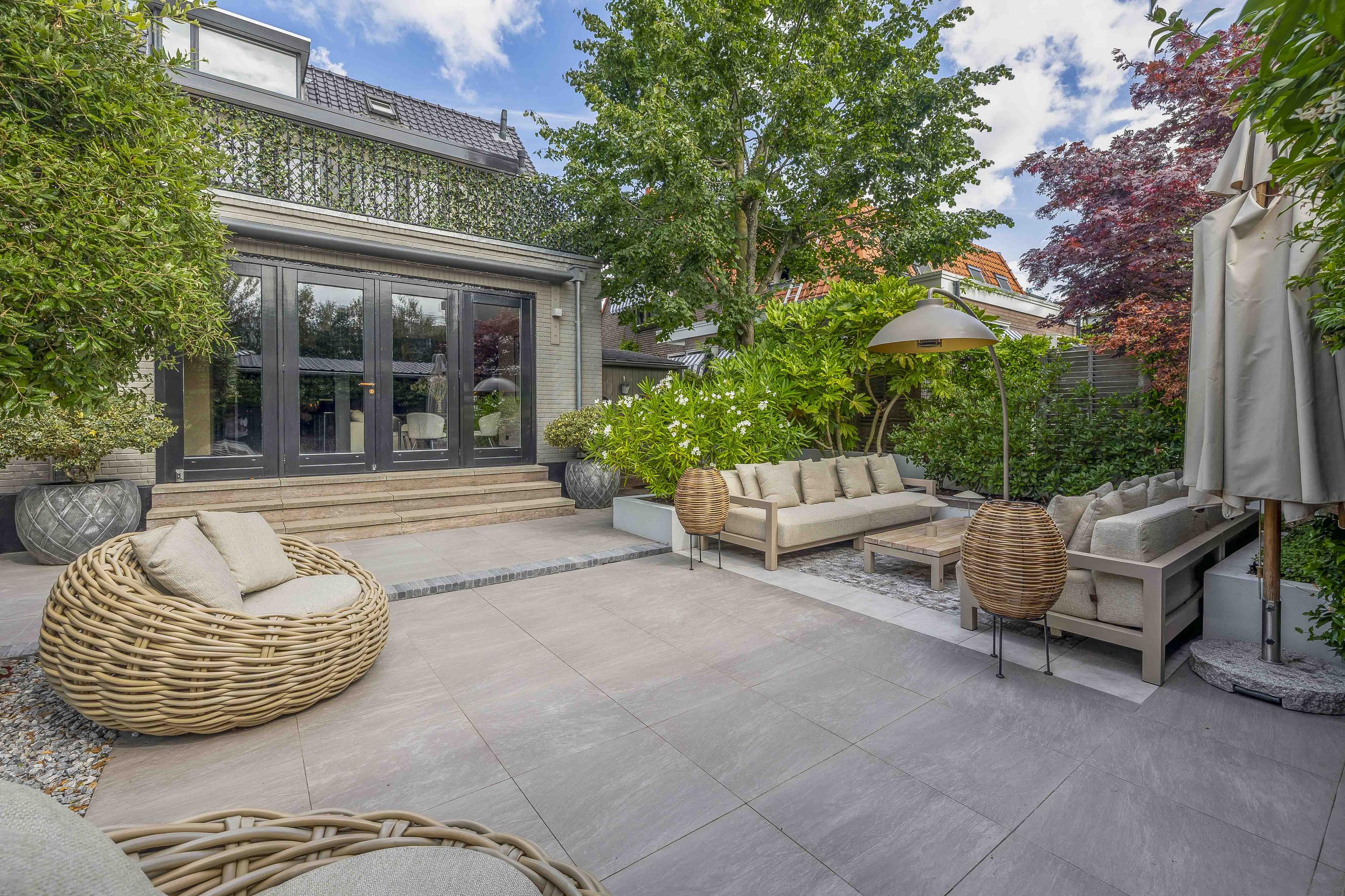 - Fraai aangelegde zonnige tuin met diverse terrassen en sfeervolle overkapping