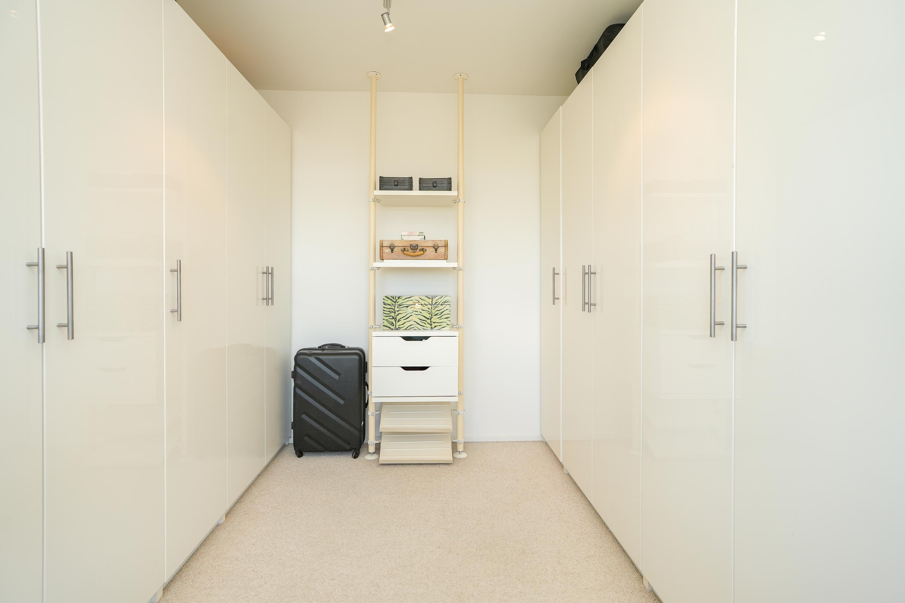 The kitchen is equipped with various built-in appliances and provides access to the first, south-facing balcony. Adjacent to the kitchen is an internal utility room offering additional storage and workspace. From the living room and the balcony there are beautiful views over the city of Nijmegen and Radboud University. A gas fireplace separates the dining area from the television/lounge area on the south-west side. The west-facing balcony offers lovely views towards the River Waal and the iconic Waal Bridge.