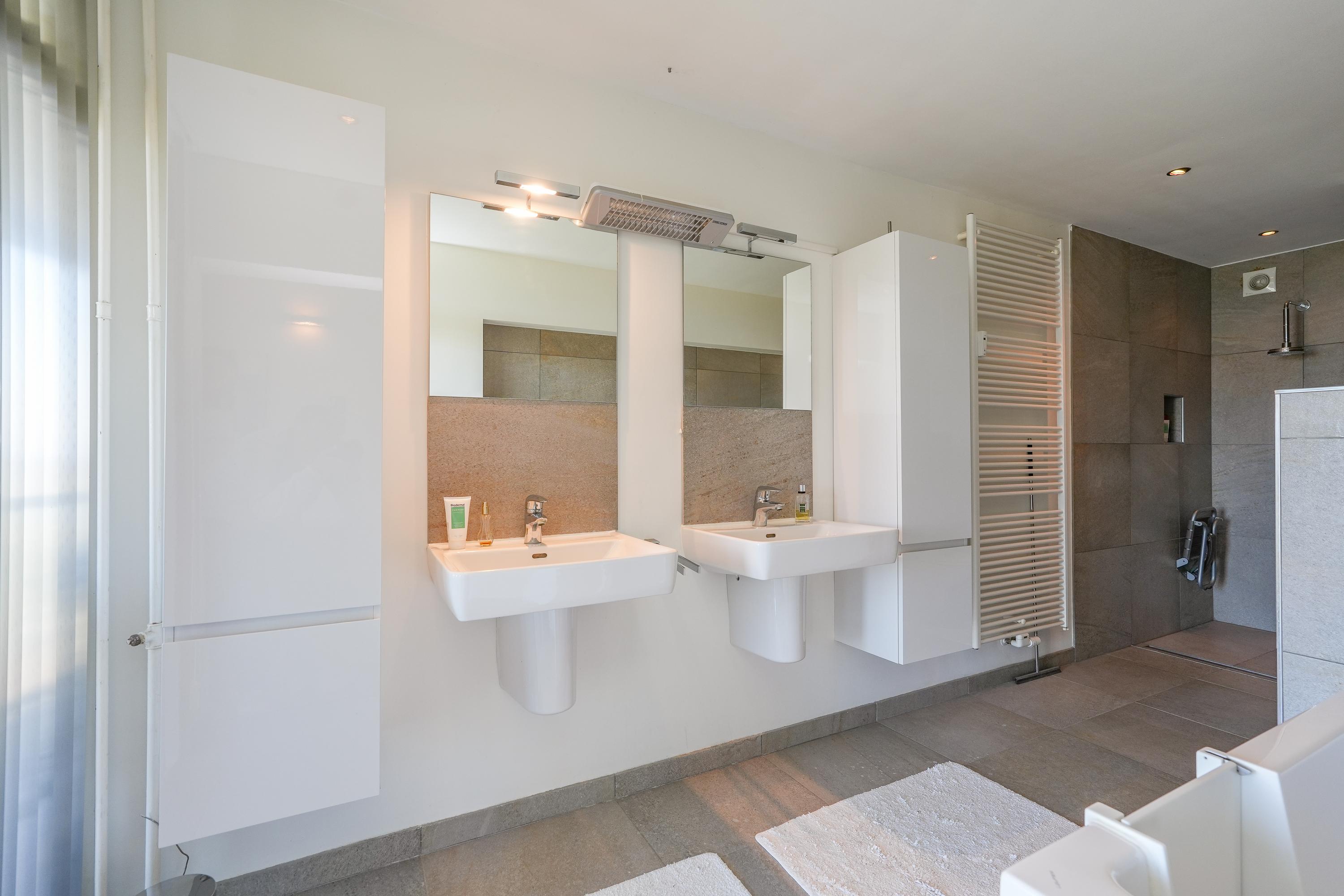 The two additional bedrooms are also spacious and, like the rest of the apartment, benefit from ample daylight and unobstructed views. One of these bedrooms has its own west-facing balcony, perfect for enjoying the afternoon and evening sun. The second bathroom is fitted with a shower and washbasin.