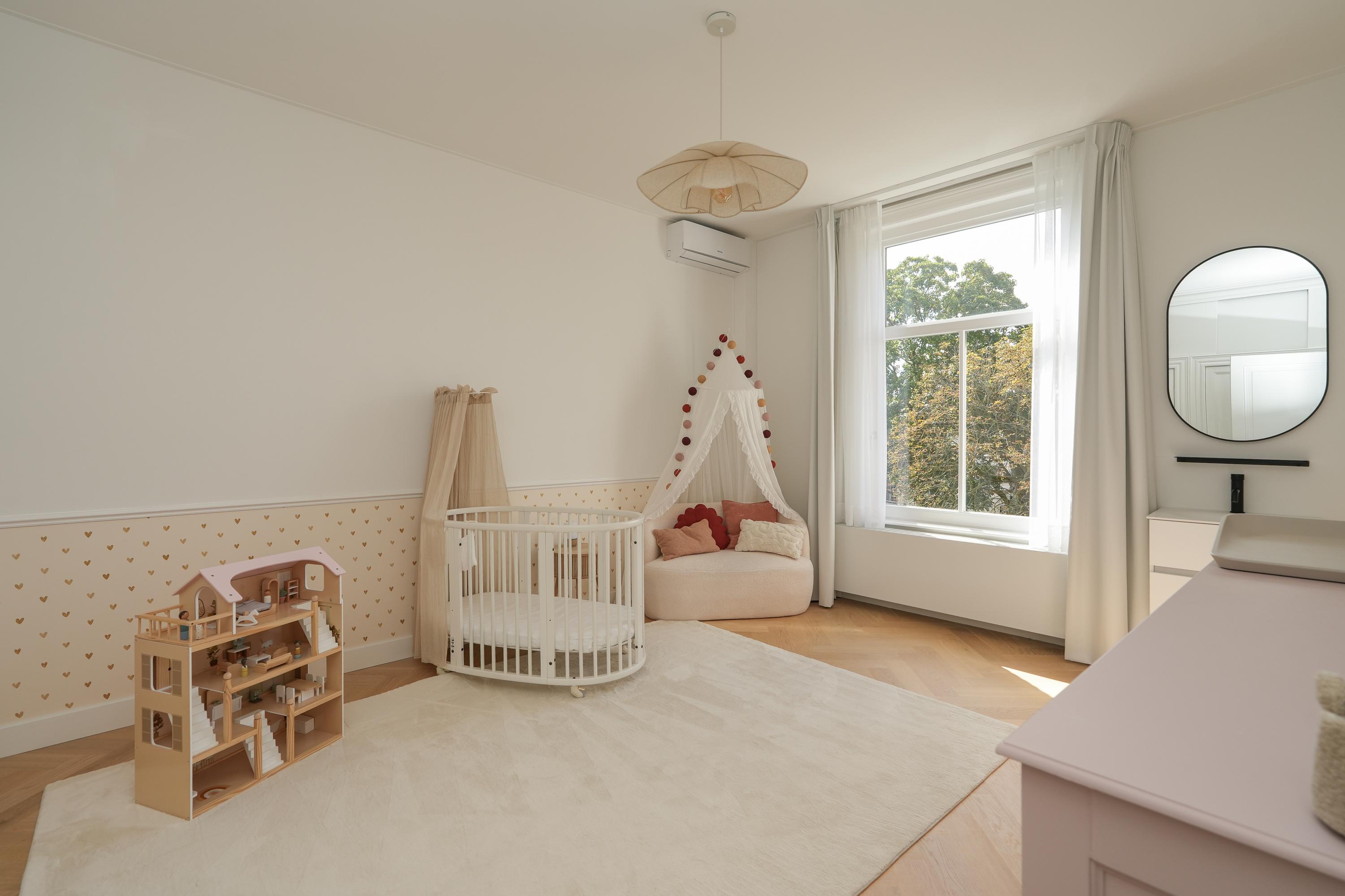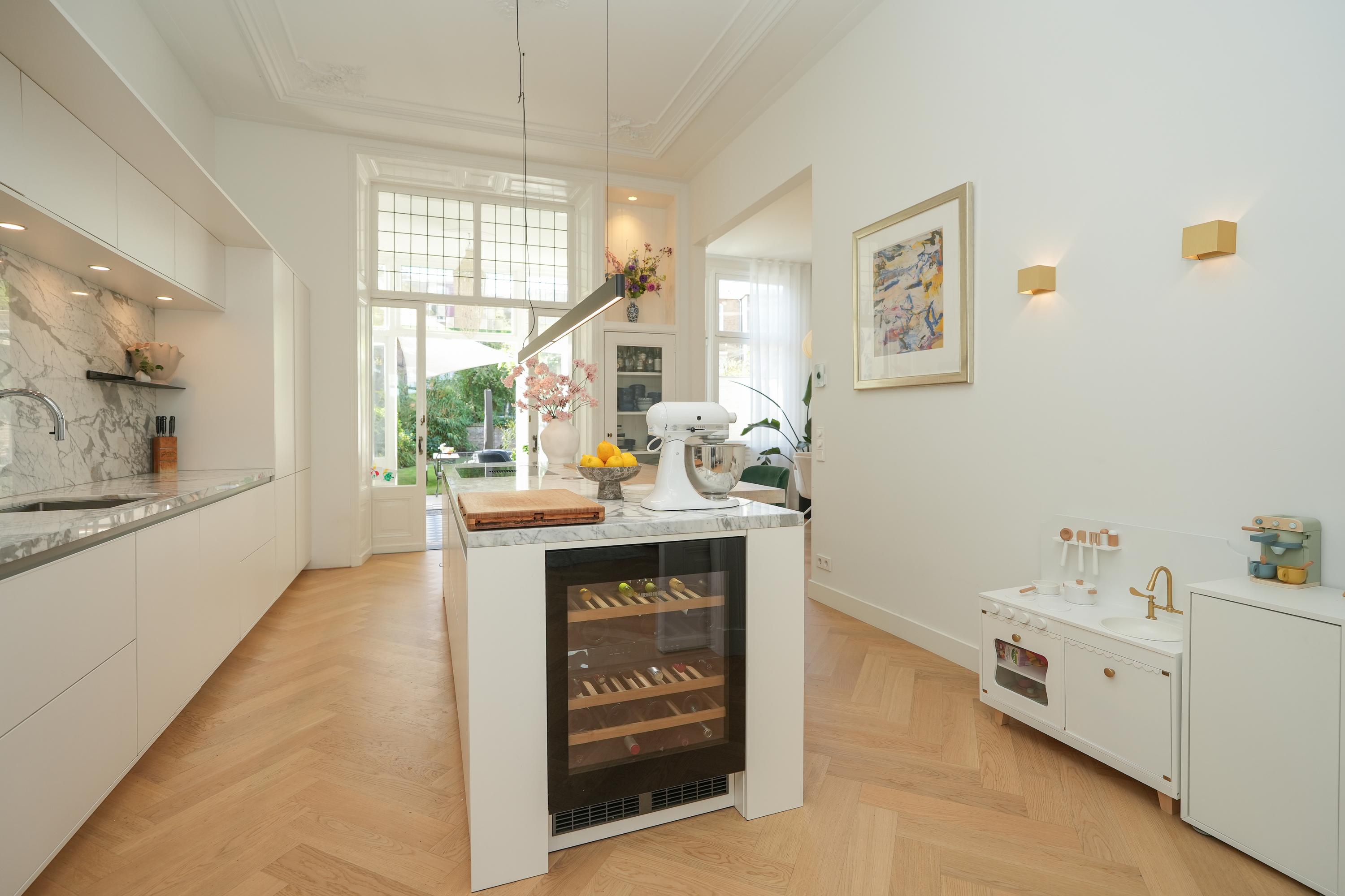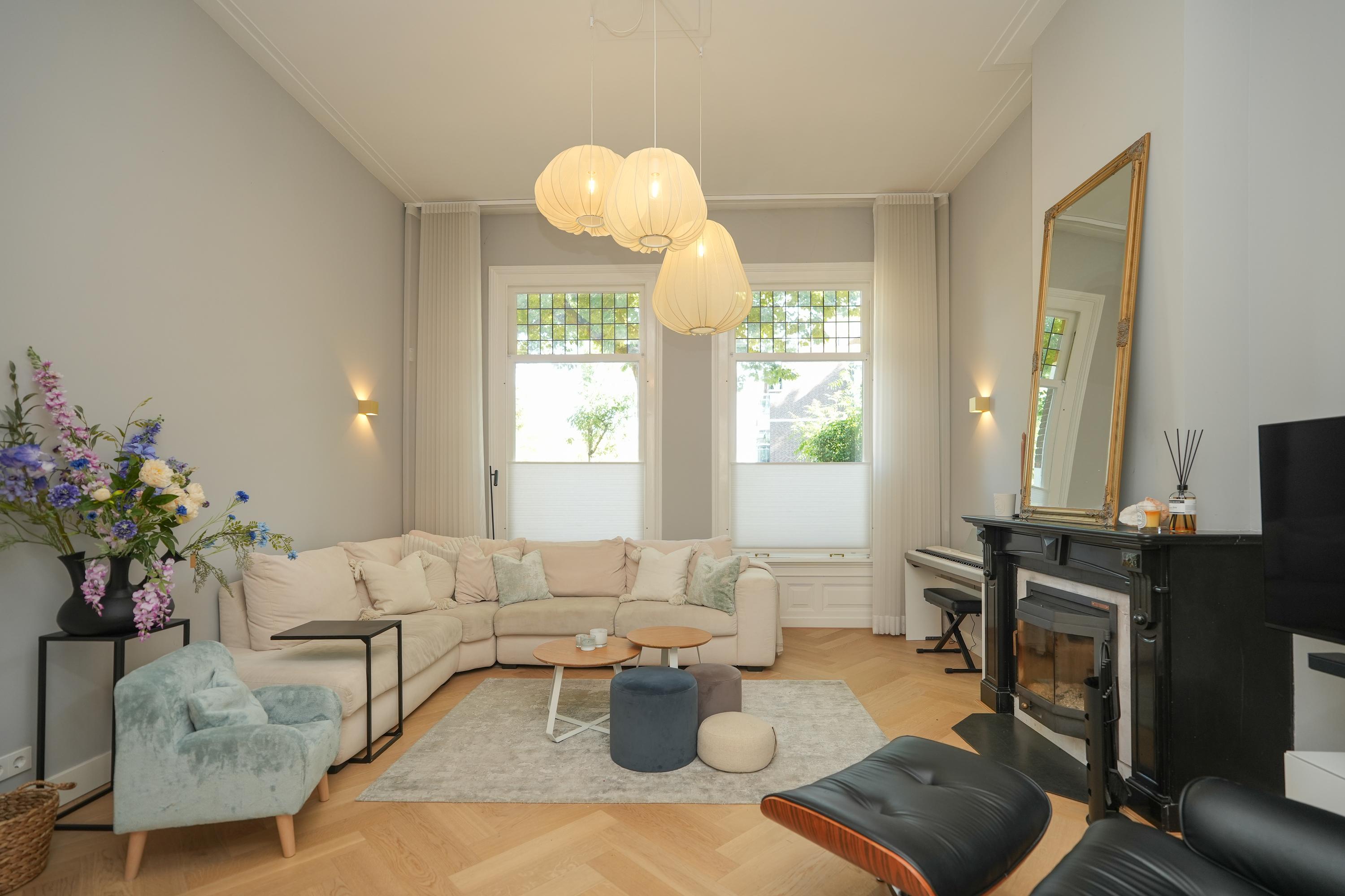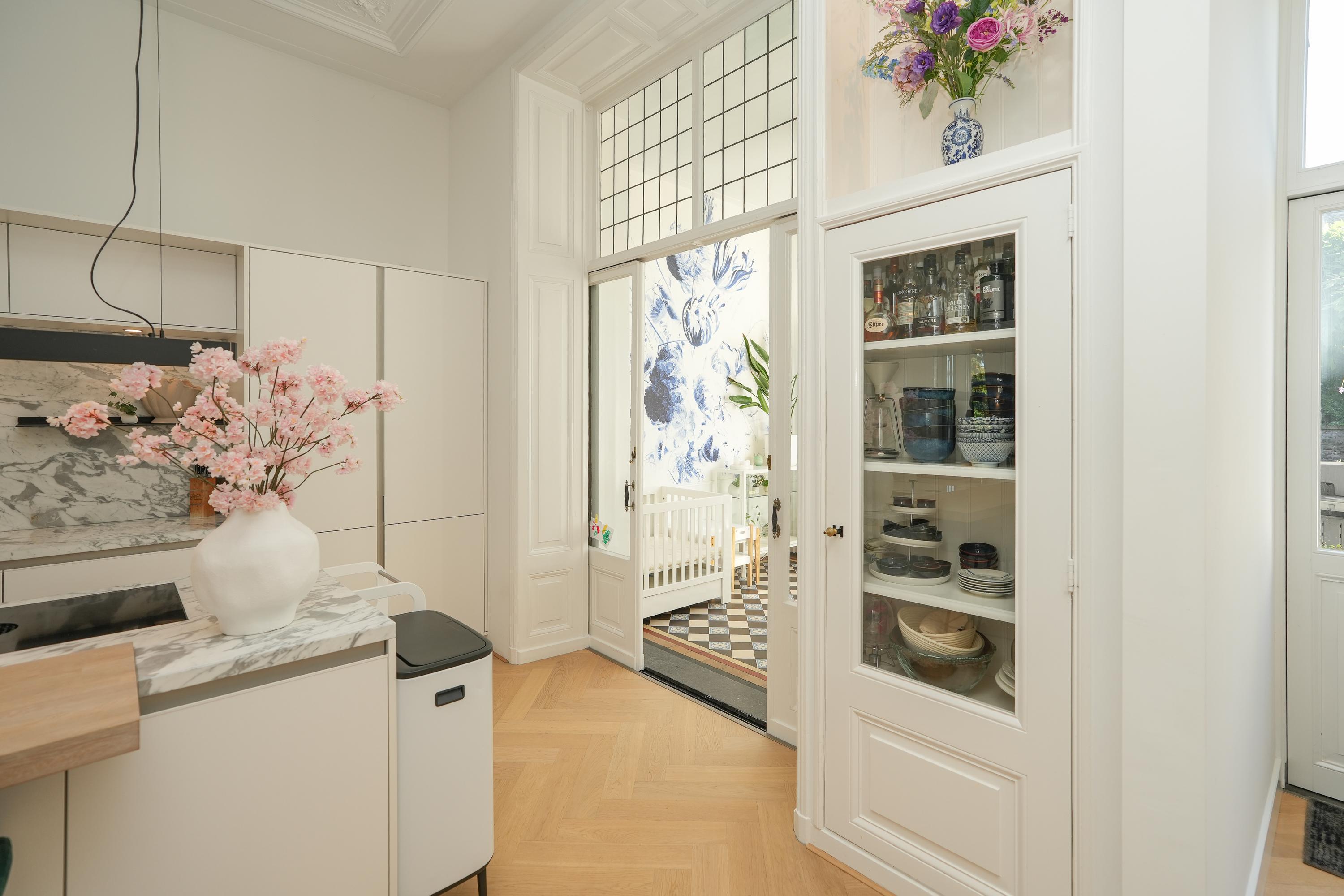 This beautiful and luxurious townhouse is a property that really makes an impression. The property was completely renovated in 2020, preserving and restoring many authentic details such as high ceilings with ornate mouldings, en-suite doors and stained glass. This house exudes atmosphere and elegance, while at the same time offering modern living comfort. With no fewer than five spacious bedrooms, the possibility for a sixth bedroom, two bathrooms, three toilets and a spacious basement, this house offers all the space a family could wish for. The stately double front door, the wide balcony at the front, the deep and quiet south-facing back garden and the excellent state of maintenance give this house an extra sense of grandeur and living pleasure. Thanks to its good insulation, the house has an energy label A and is energy efficient.