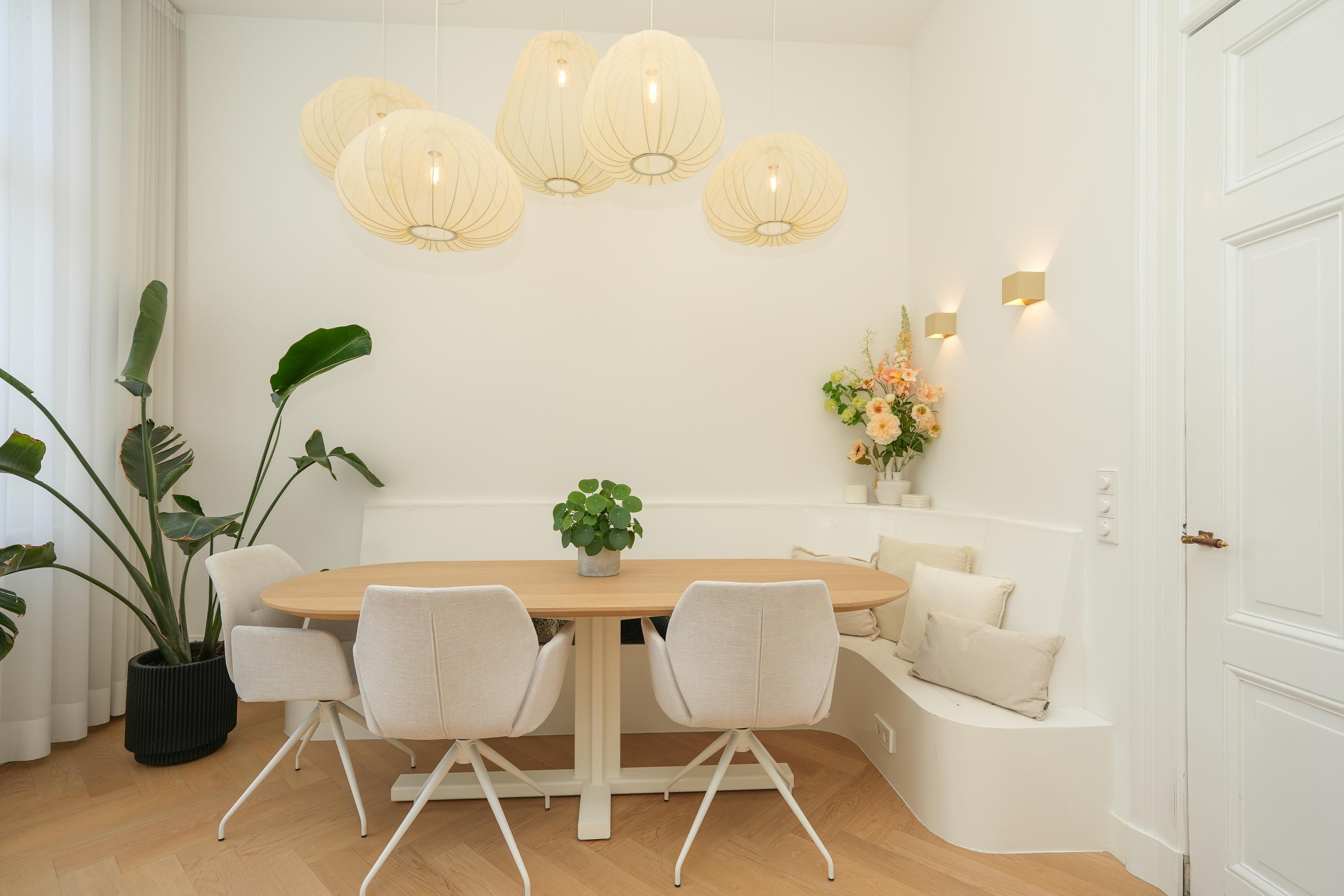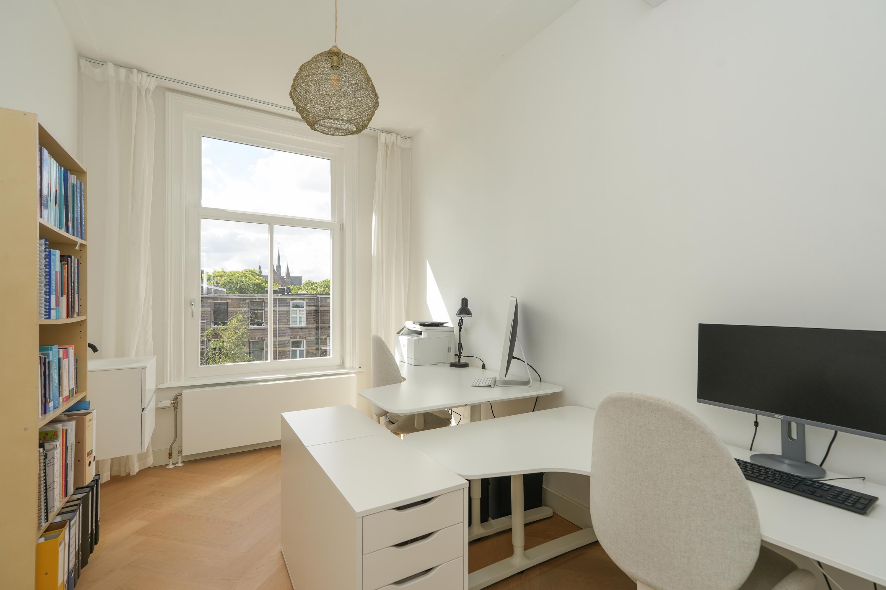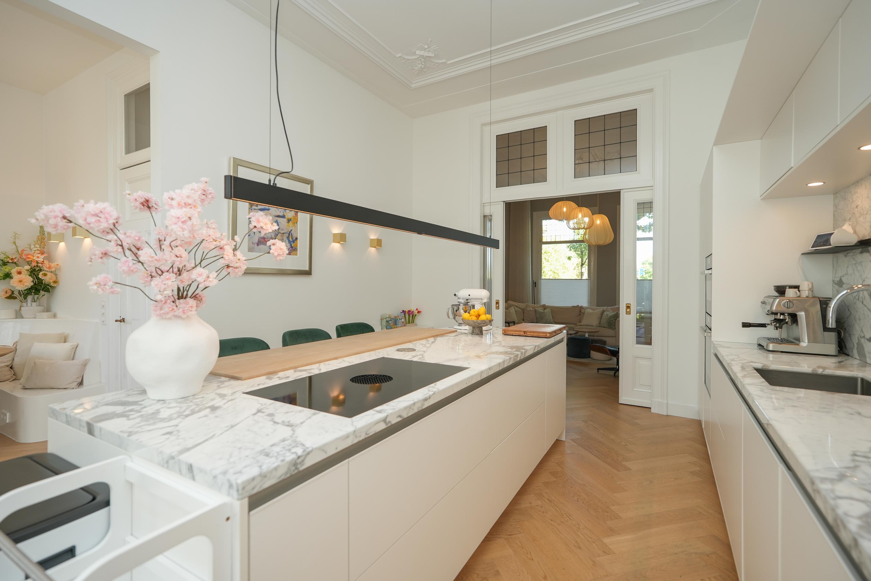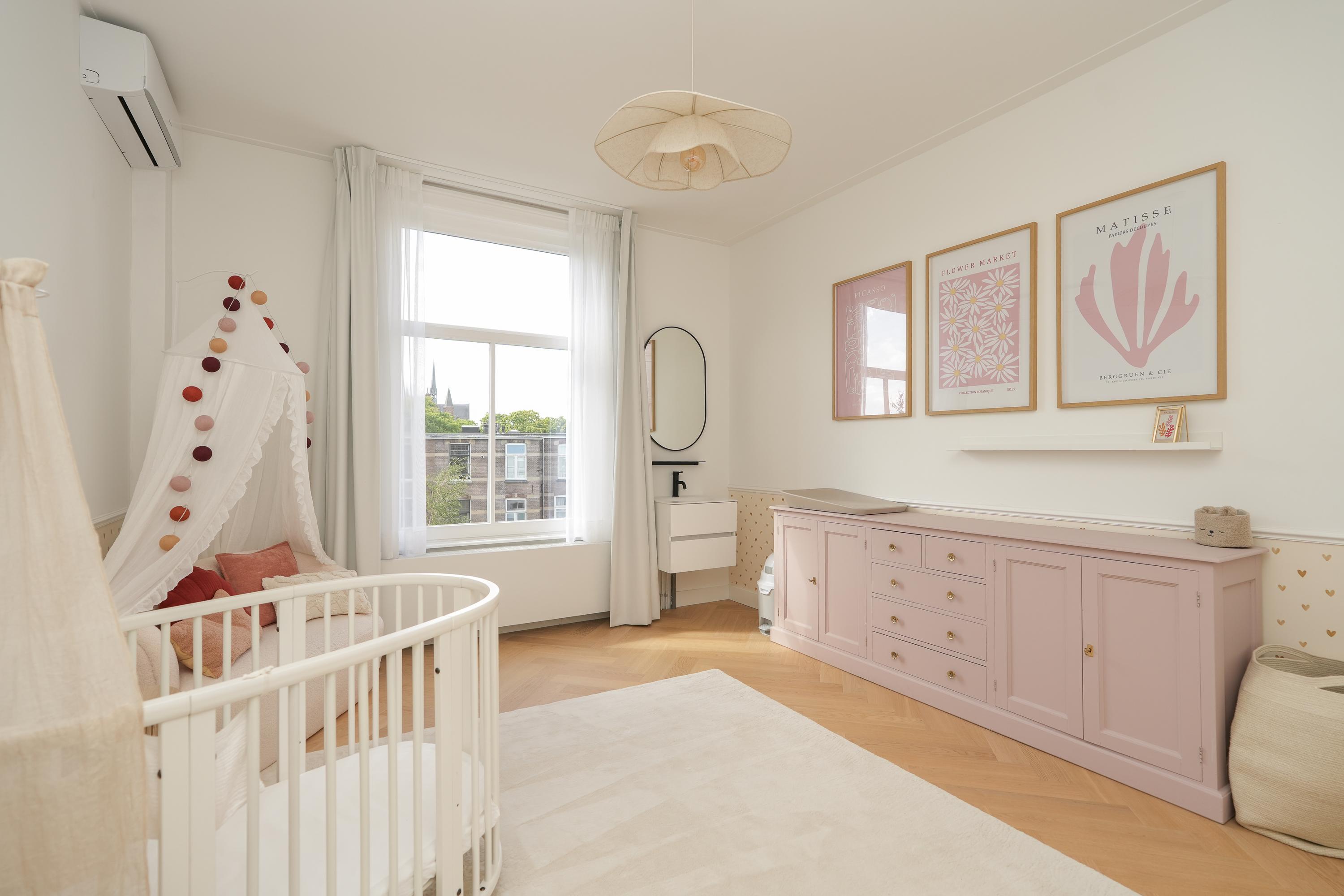 This beautiful and luxurious townhouse is a property that really makes an impression. The property was completely renovated in 2020, preserving and restoring many authentic details such as high ceilings with ornate mouldings, en-suite doors and stained glass. This house exudes atmosphere and elegance, while at the same time offering modern living comfort. With no fewer than five spacious bedrooms, the possibility for a sixth bedroom, two bathrooms, three toilets and a spacious basement, this house offers all the space a family could wish for. The stately double front door, the wide balcony at the front, the deep and quiet south-facing back garden and the excellent state of maintenance give this house an extra sense of grandeur and living pleasure. Thanks to its good insulation, the house has an energy label A and is energy efficient.