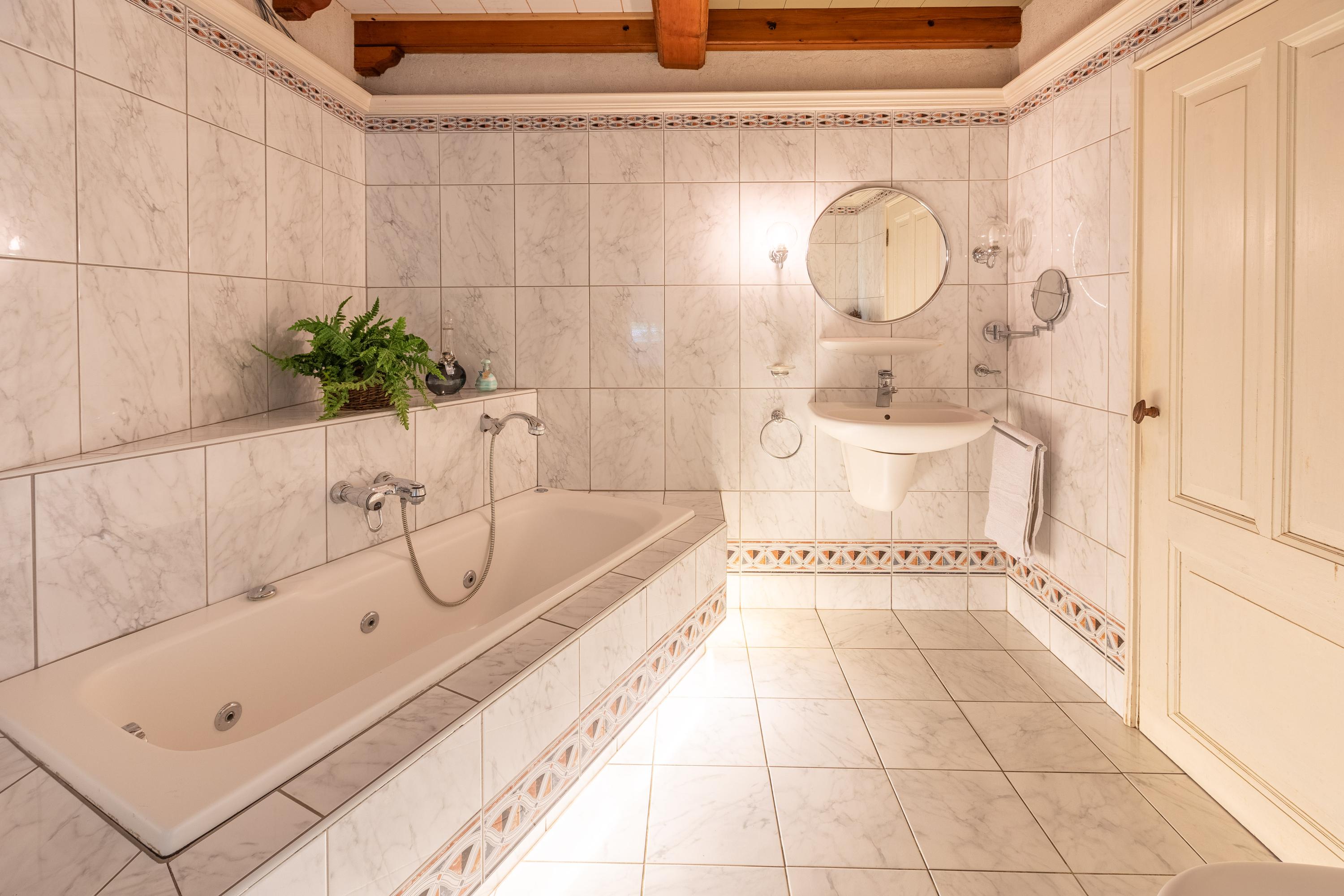 Upon entering, you immediately notice the homely atmosphere. The living room is cozy, light, and spacious, and the kitchen offers a view of the garden. The ground floor also has two bedrooms, a spacious bathroom, a separate toilet, and a second bathroom.