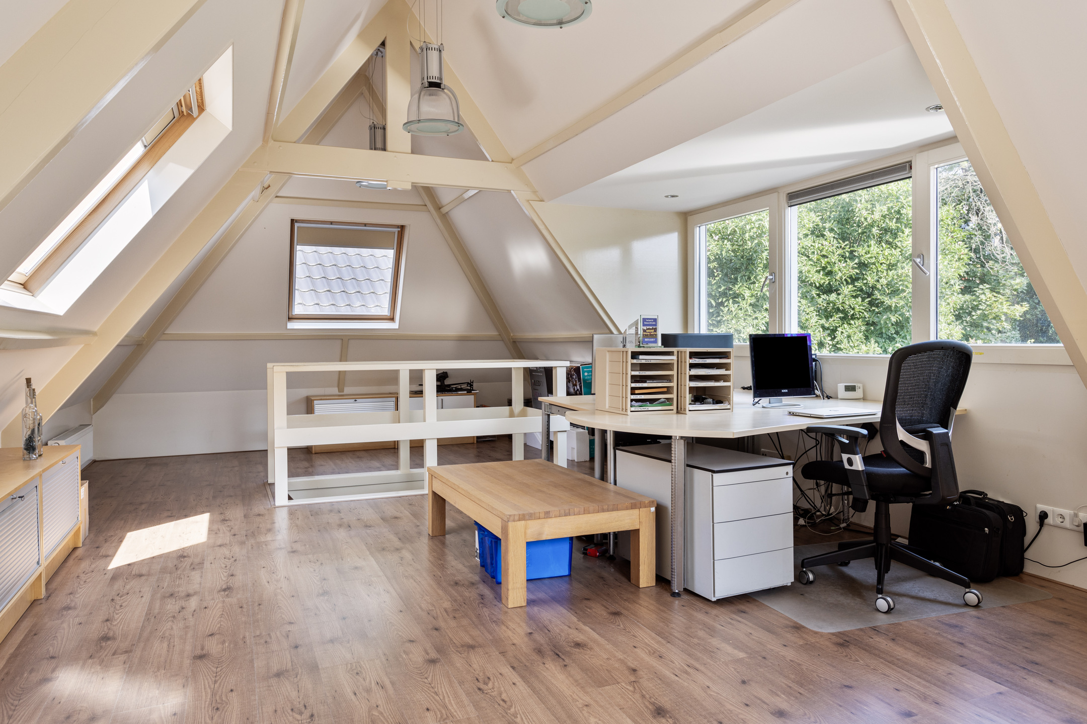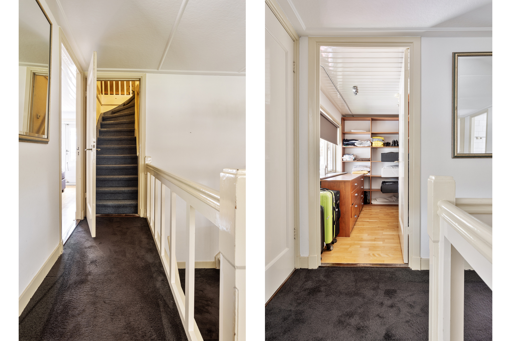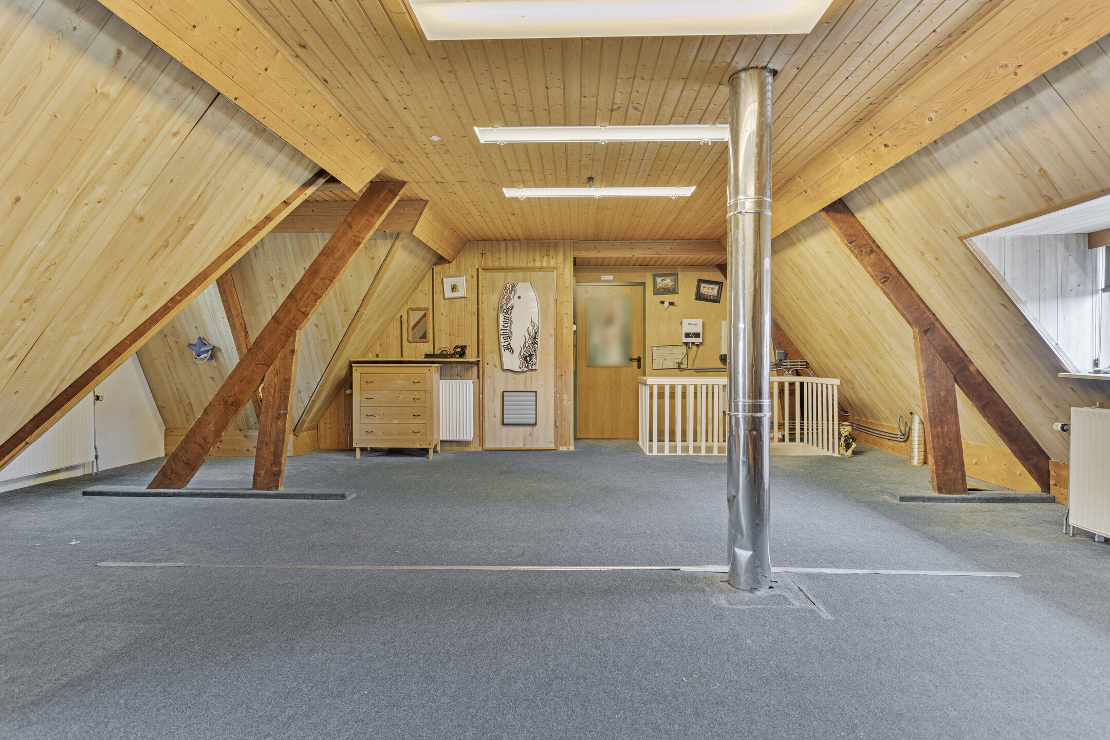A fixed staircase leads to the attic floor, currently a large open space with two separate storage rooms. With plenty of natural light from the surrounding windows, this space is easily adaptable for various purposes, such as additional bedrooms, a home gym, or a creative studio.