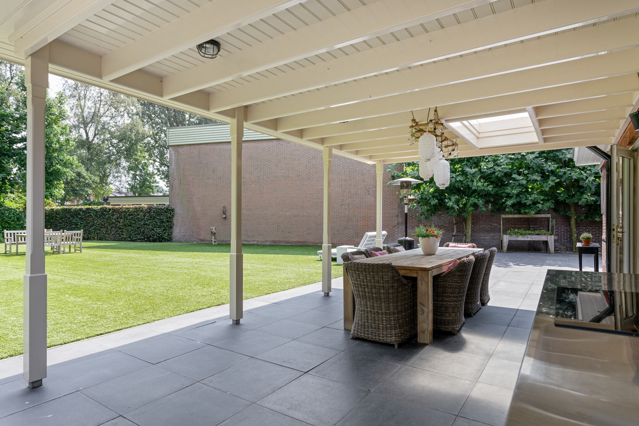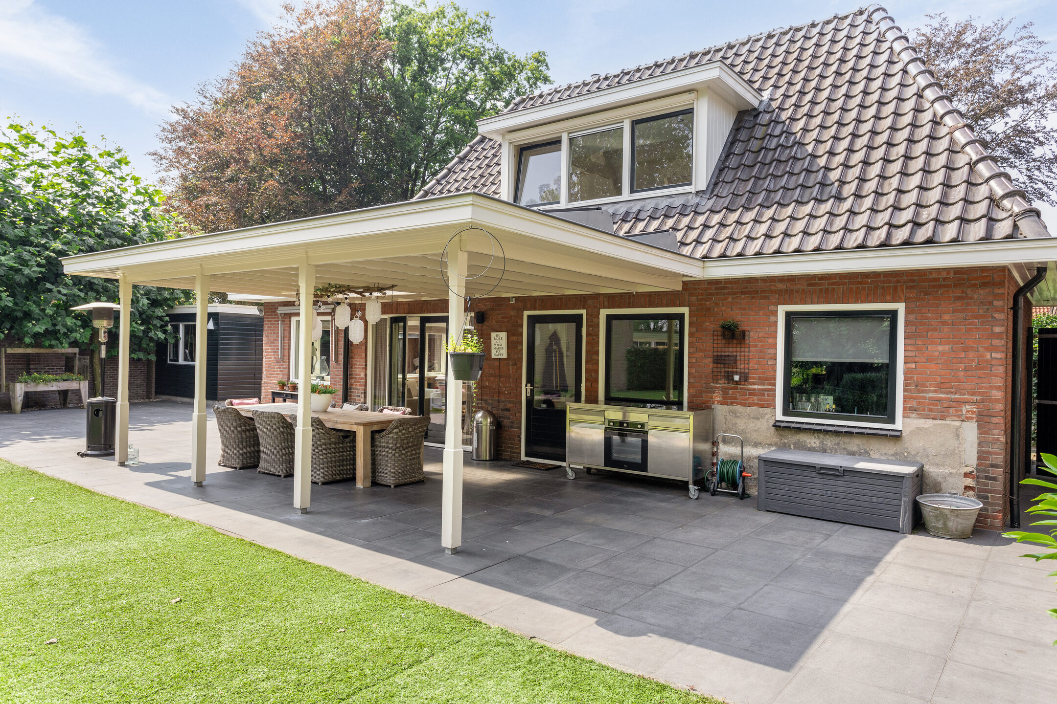The standout feature of this home is undoubtedly its rear garden: though centrally located in Oldenzaal, you’ll feel as if you’re living in the countryside. Offering full privacy, lush greenery, and an open view to the east, this garden includes a large covered terrace, perfect for outdoor living most of the year. Still need more storage space? A detached stone garage is located to the side of the house.