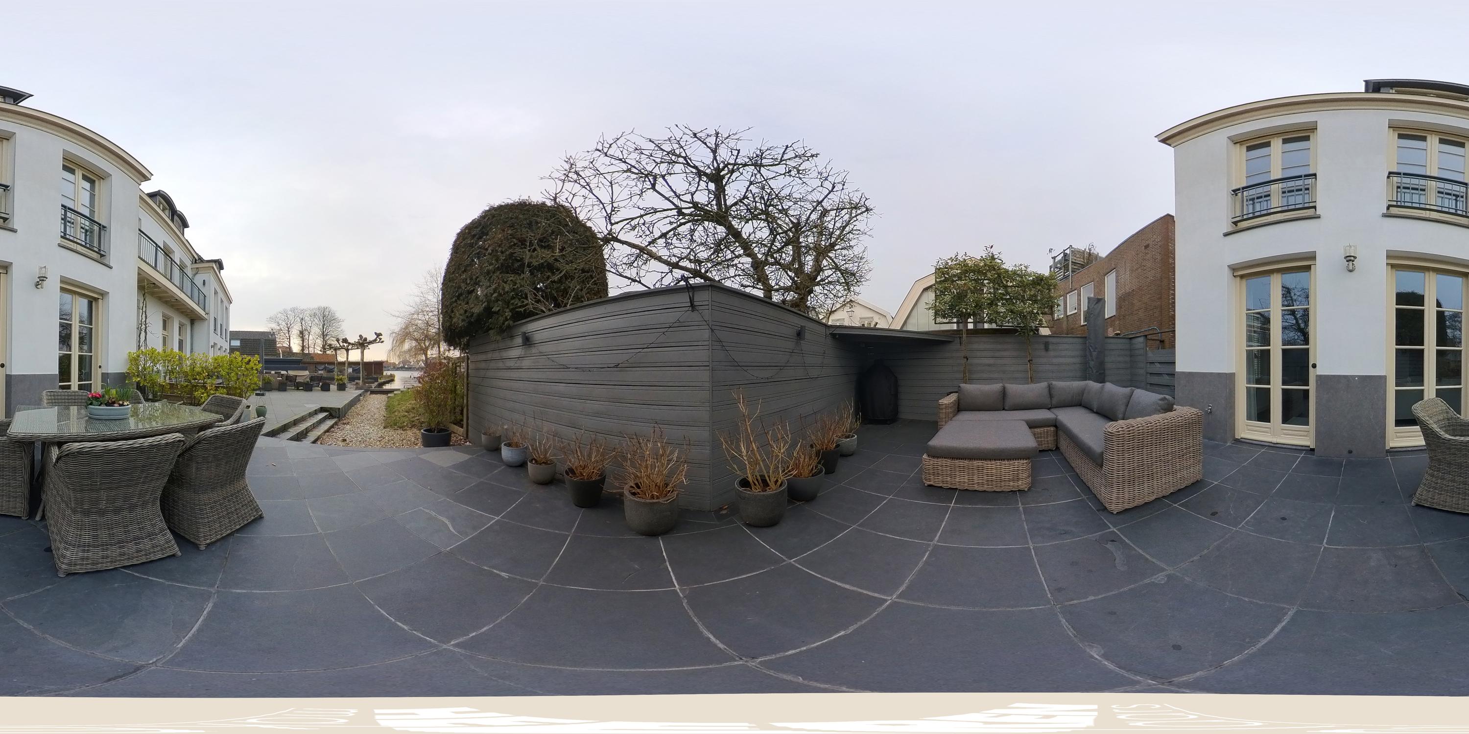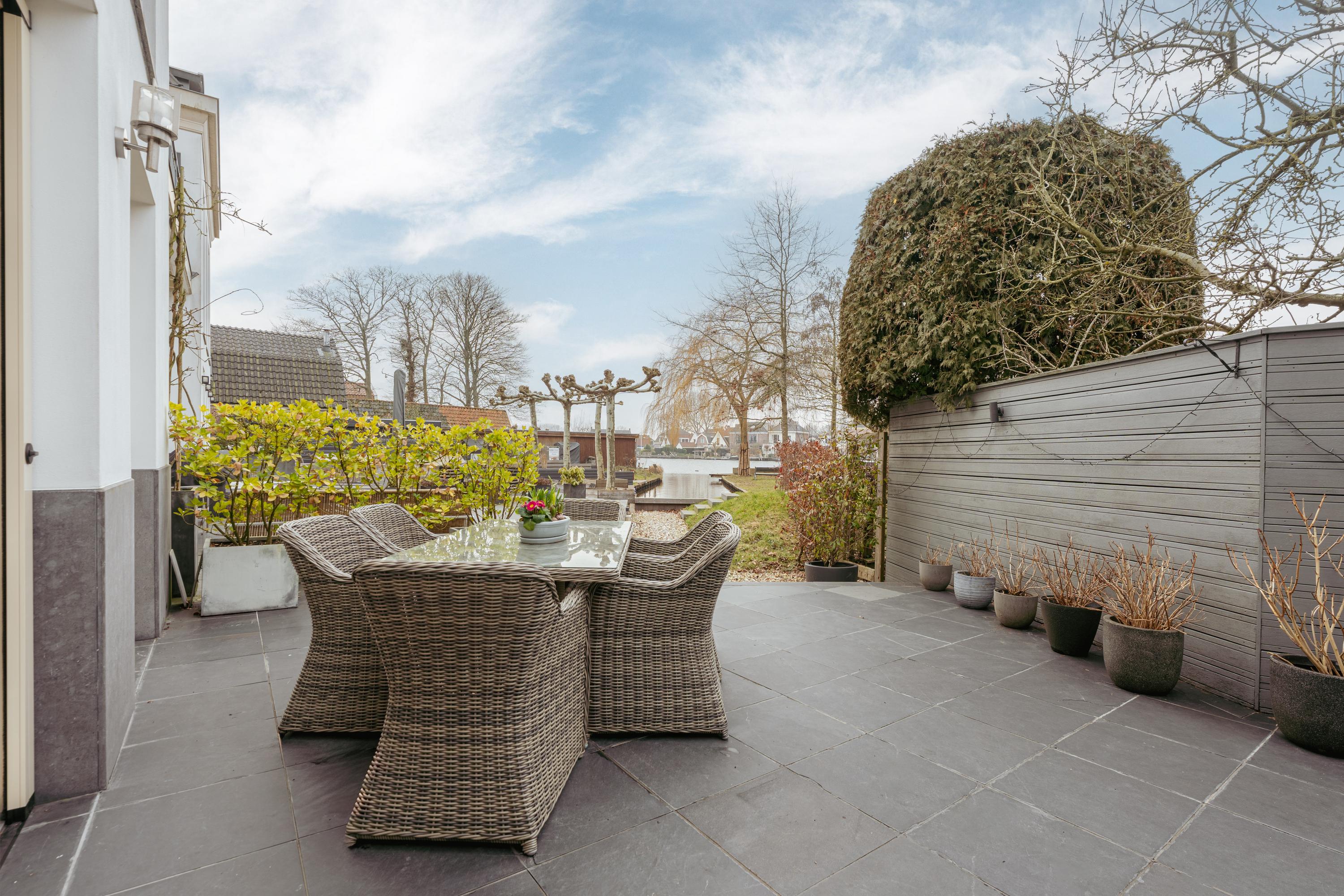 The terrace is finished with anthracite coloured tiles and a fantastic view over the river Amstel. A wonderful place to enjoy drinks with friends on summer evenings while overlooking the water; in winter, skating here is even a possibility. In the front garden, there is a separate storage unit of approximately 7 m², fitted with electricity. A rear access path runs alongside the house.
