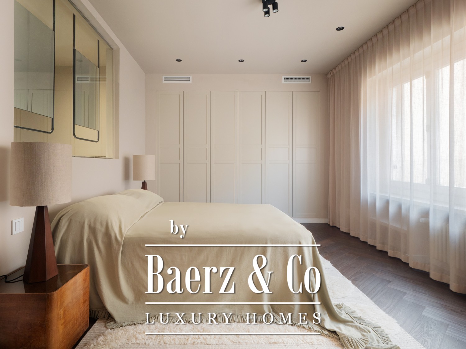 Four bedrooms offer privacy and each boasts a dedicated en-suite bathroom. Parquet floors run throughout, enhancing the interplay of warm character and sleek Scandinavian design. A private terrace of 16 m² extends the living space outdoors, inviting glimpses of Palma’s gentle Mediterranean light. For urban convenience, a parking space is included in the neighboring building.