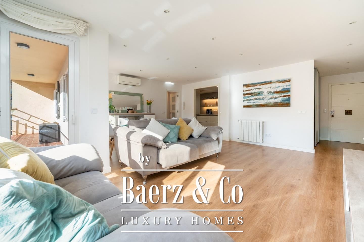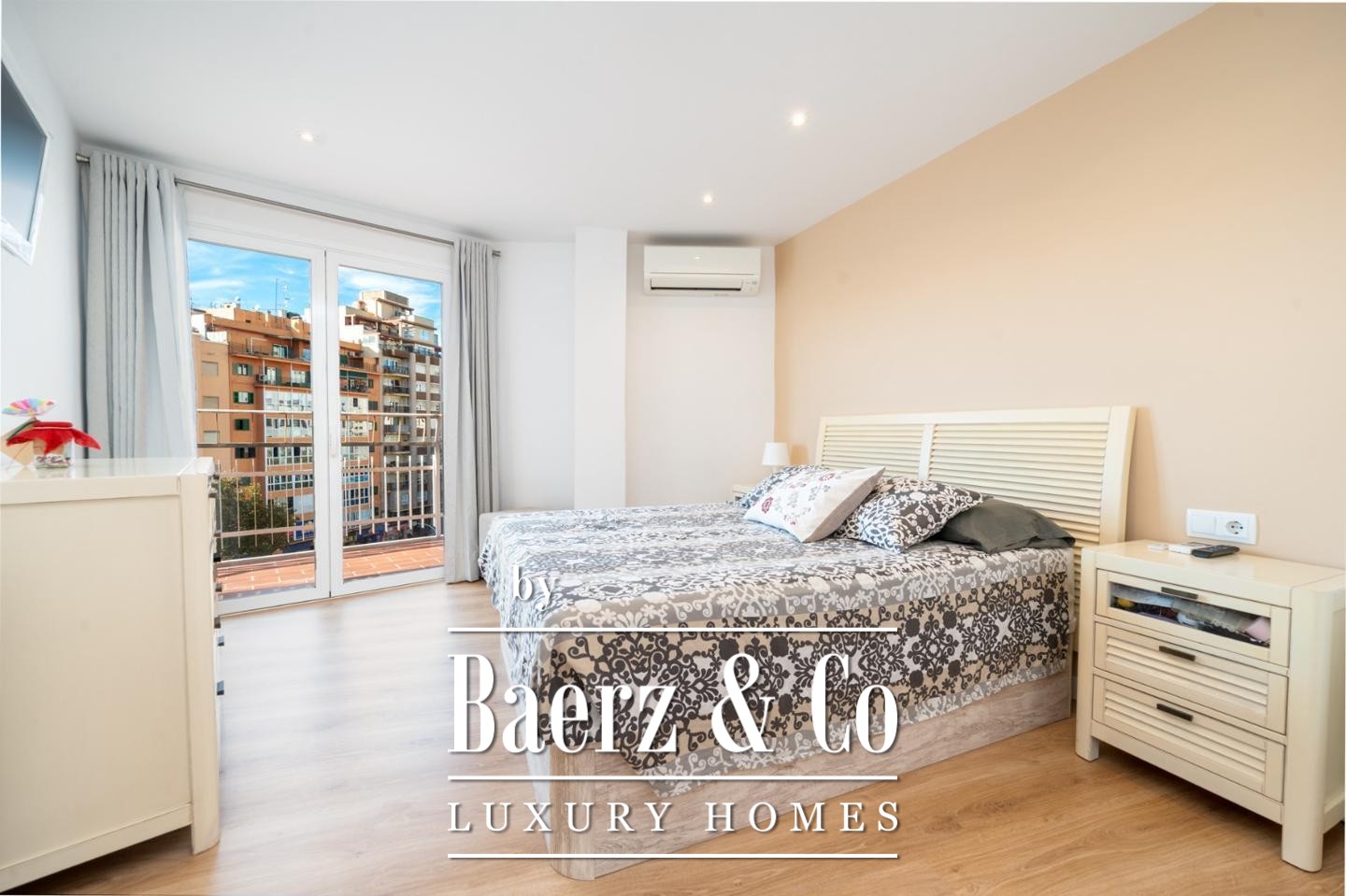 Apartment Palma brings together Mediterranean light and contemporary refinement in the Avenidas district. This 158 m² residence, fully renovated in 2017, presents an airy and balanced layout with four double bedrooms, each filled with natural light and fitted wardrobes. Two elegant bathrooms, one en suite, and an independent laundry area add both privacy and convenience. The living and dining area, spanning approximately 35 m², flows seamlessly into a kitchen designed for both practicality and social connection.