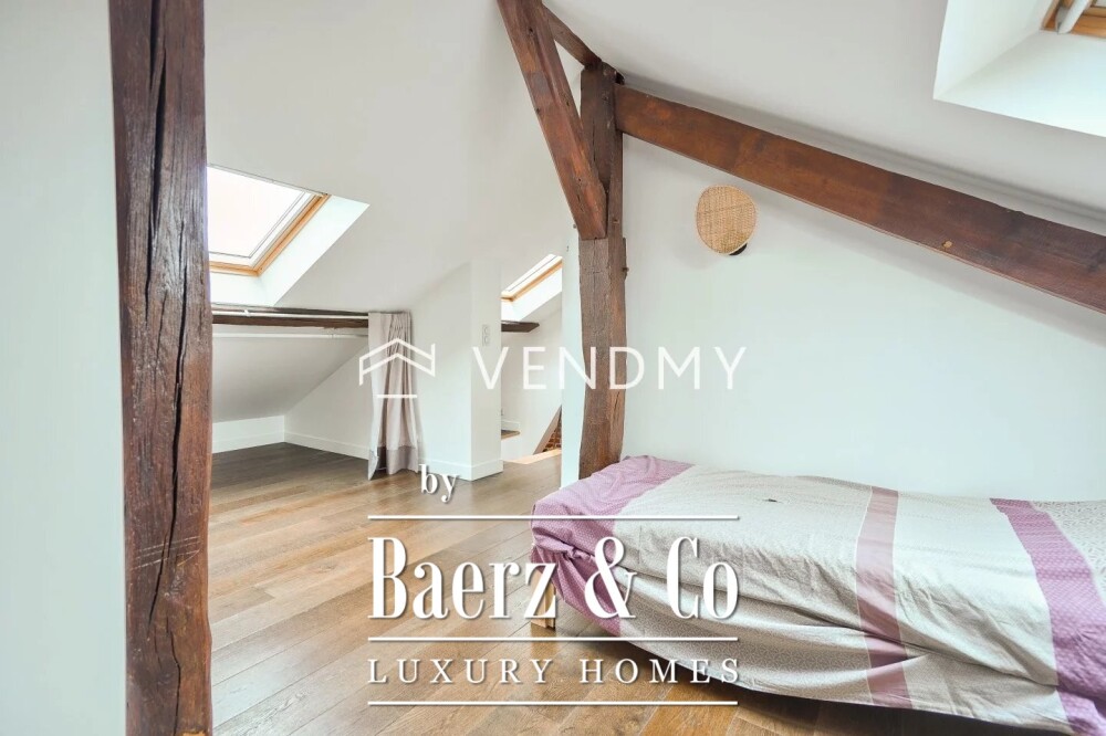 Recently renovated, this residence preserves essential Parisian details: honeyed parquet flooring, delicate mouldings, and exposed beams establishing a calm yet luminous atmosphere. The entry reveals a double reception room bathed in natural light, a fully equipped kitchen, two serene bedrooms, and a bathroom with a toilet. Contemporary amenities include air conditioning, double glazing, optical fiber, security door, intercom, and digicode, seamlessly blending comfort with historic character.