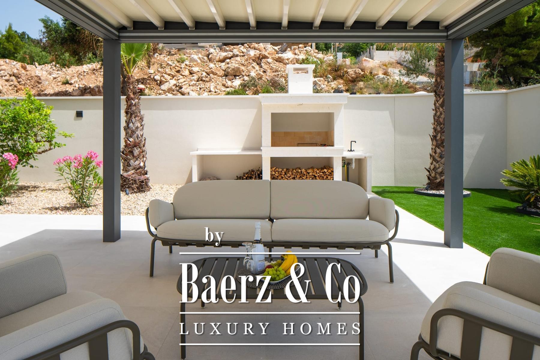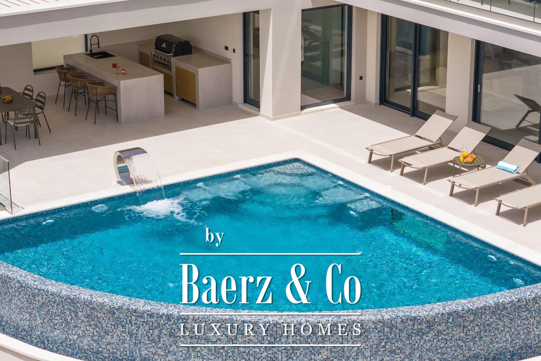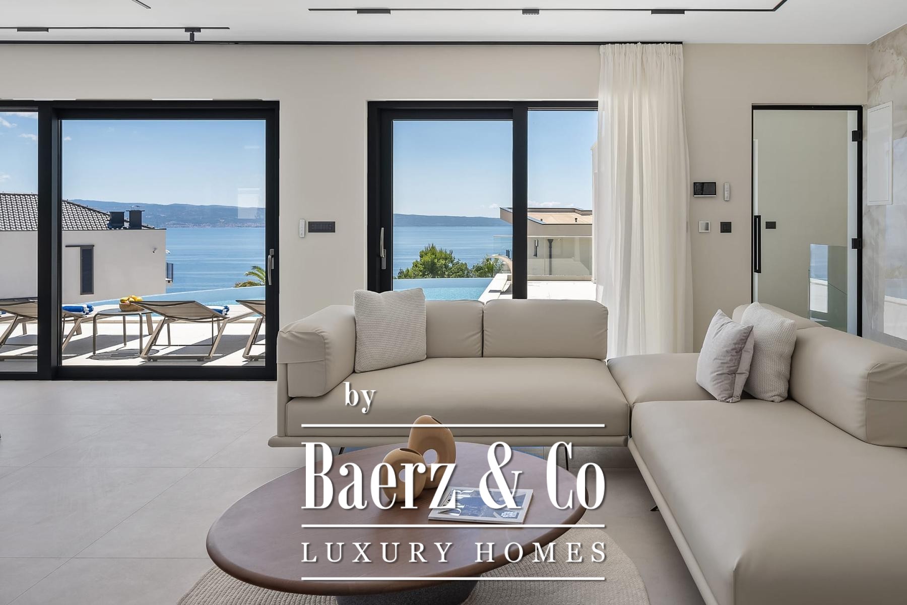 Luxury villa Podstrana presents a contemporary statement above the Adriatic, combining panoramic sea views with the quiet rhythms of hillside living. This villa, newly constructed and fully furnished, spans 328 m² across three levels, set discreetly within a 620 m² plot just 300 metres from the sea.