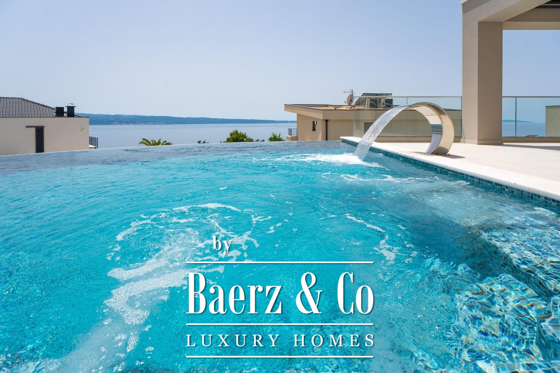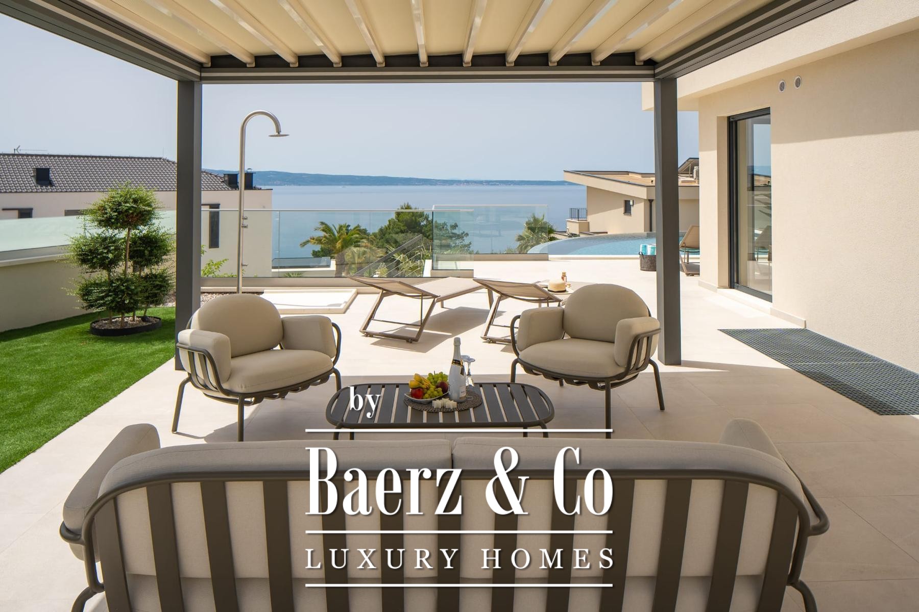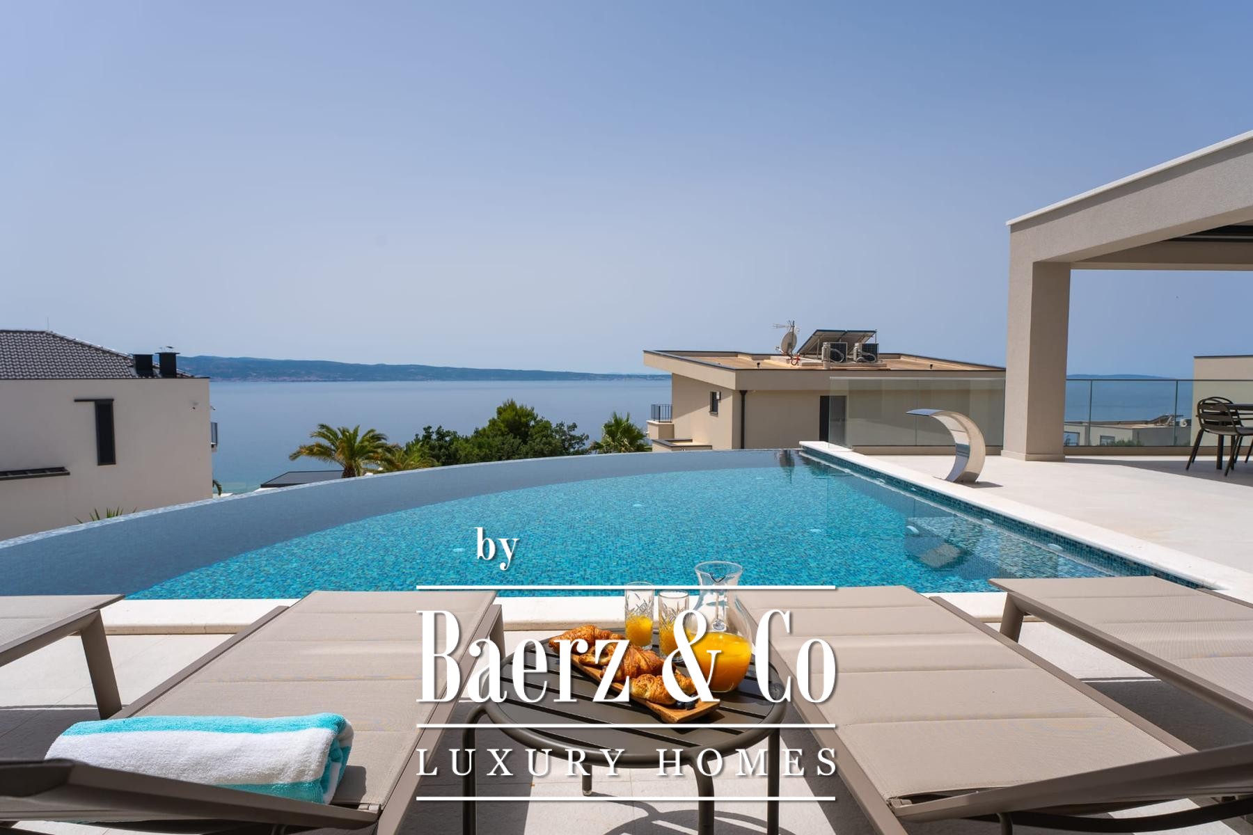 Luxury villa Podstrana presents a contemporary statement above the Adriatic, combining panoramic sea views with the quiet rhythms of hillside living. This villa, newly constructed and fully furnished, spans 328 m² across three levels, set discreetly within a 620 m² plot just 300 metres from the sea.