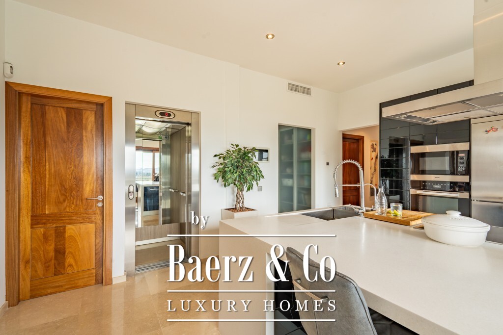 Mediterranean villa Pollença stands as a rare offering in one of the island's most sought-after settings, surrounded by just 20 exclusive residences and directly bordering a 9-hole golf course. Spanning a 2,319 m² plot and offering 672 m² of living area, this villa is poised above the landscape, delivering panoramic sea and mountain views that extend across the greens towards the bays of Pollensa and Alcudia. The south-facing orientation enhances the light-filled interiors, while intelligent landscaping guarantees complete seclusion for the pool, terraces, and gardens.