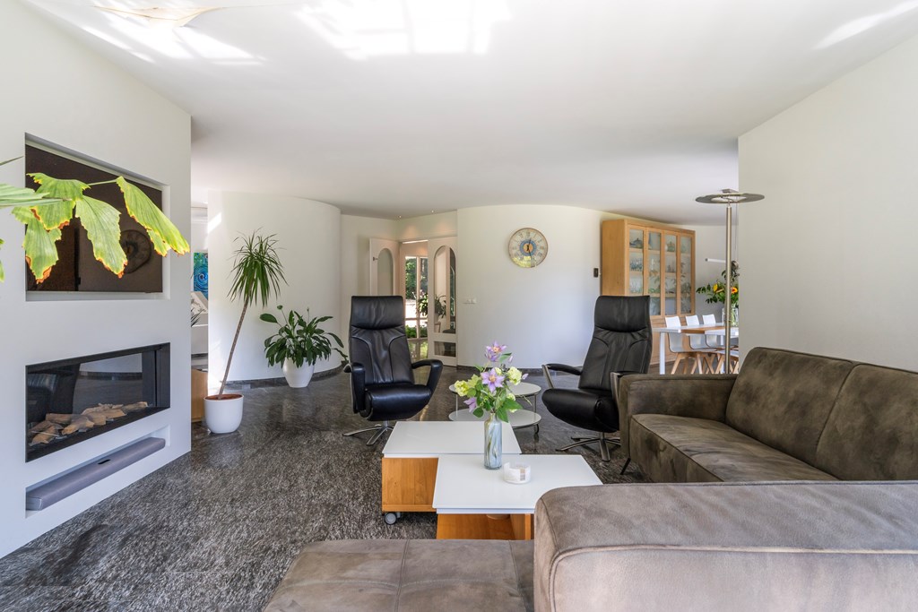 Would you like to live in luxury and tranquillity surrounded by greenery? You can—at Verlengde Oude Veenendaalseweg 26. In one of Rhenen’s most beautiful locations stands this 1995-built villa with approximately 267 m² of living space. A generous living room, spacious kitchen, three large bedrooms, two bathrooms, and two balconies make this uniquely shaped home truly special. Thanks to the large windows, every room enjoys abundant natural light and wonderful views of the green surroundings. The beautifully landscaped southeast-facing rear garden offers sunshine and privacy in abundance. There are many possibilities in and around the home and plot—for example, space for a horse, pony, or small livestock. In short, a fantastic spot for families or anyone who loves space and outdoor living!
