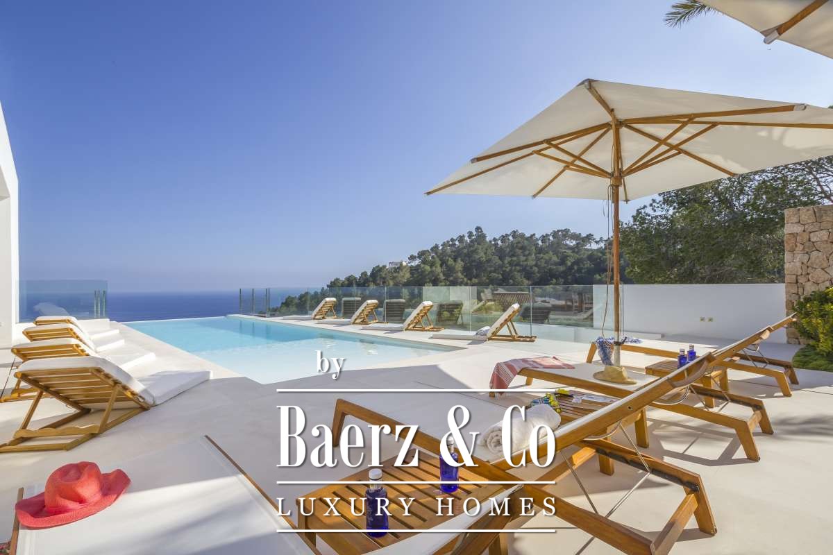 Villa Roca Llisa stands as a benchmark of understated luxury in the heart of Ibiza. This villa Roca Llisa property occupies a coveted position within a gated enclave, offering 24-hour security and direct access to the Mediterranean lifestyle. Overlooking the tranquil bay of Cala Olivera, the 950 m² residence spans four floors, thoughtfully designed for comfort, privacy, and openness.