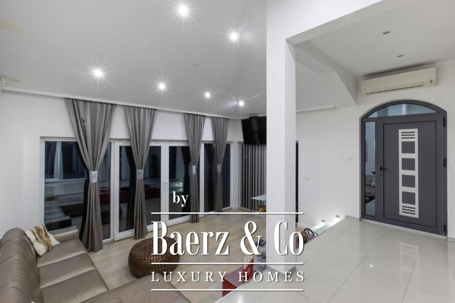 The upper level presents a luminous living space with a kitchen and dining area, two bedrooms, and two bathrooms, with each main room connecting to balconies oriented towards sea and pool views. Flexibility is integral, as the first floor can be separated into independent apartments to suit a range of lifestyles or hospitality needs. Refined finishes and premium furnishings underscore every detail, while thoughtful amenities include a tavern with barbecue, an inviting space for dining and gathering, and a sunlit yard. Three parking spaces complete the picture of relaxation and opportunity in Croatia’s coastal landscape.