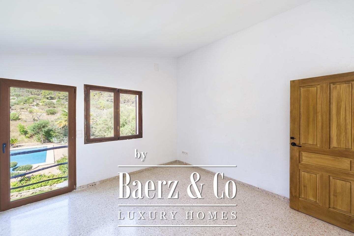 Upstairs, three spacious bedrooms and a timeless bathroom maintain clear proportions and a sense of calm. Outdoors, the swimming pool anchors the property, bordered by sunlit terraces and corners for shade, with grounds designed for Mediterranean planting. The finca preserves privacy throughout, including its annex, ready for use as a studio or summer kitchen. A private well supports the garden landscape.