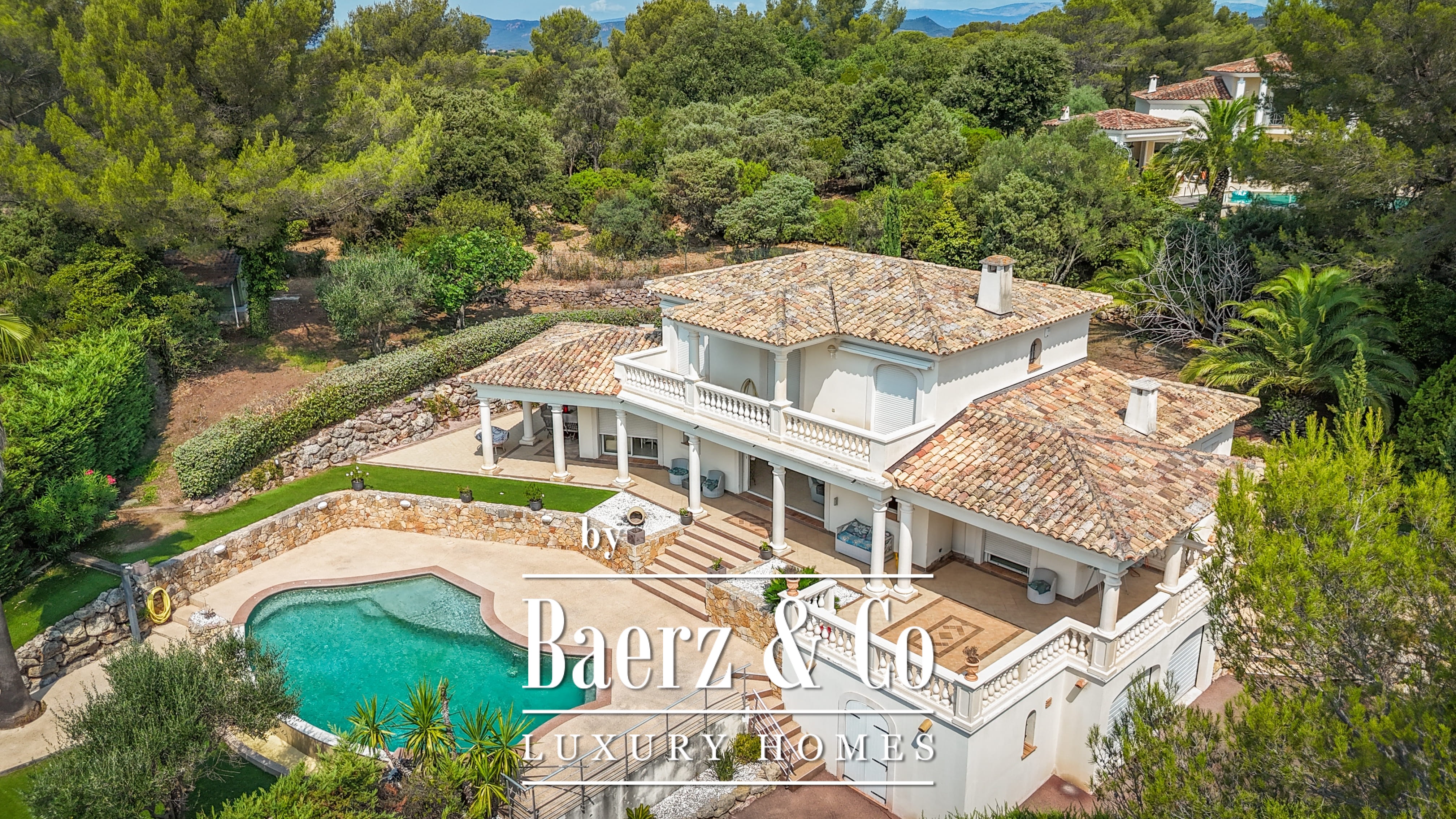 Villa Saint-Raphaël is offered for sale in one of the most desirable settings on the Côte d’Azur, set within a private, secure estate. This 205 m² residence is defined by its elevated position, optimal sunlight, and quiet residential atmosphere, a short distance from renowned golf courses.