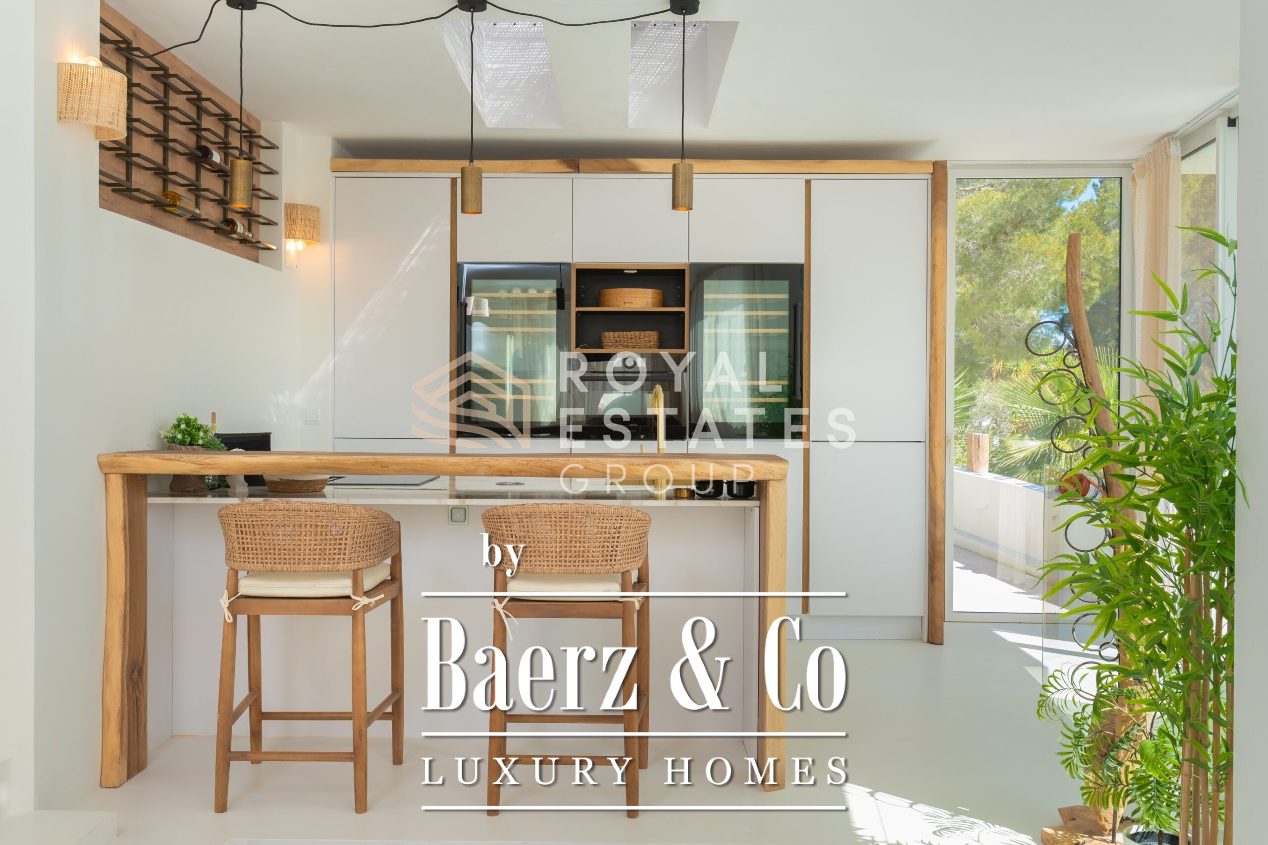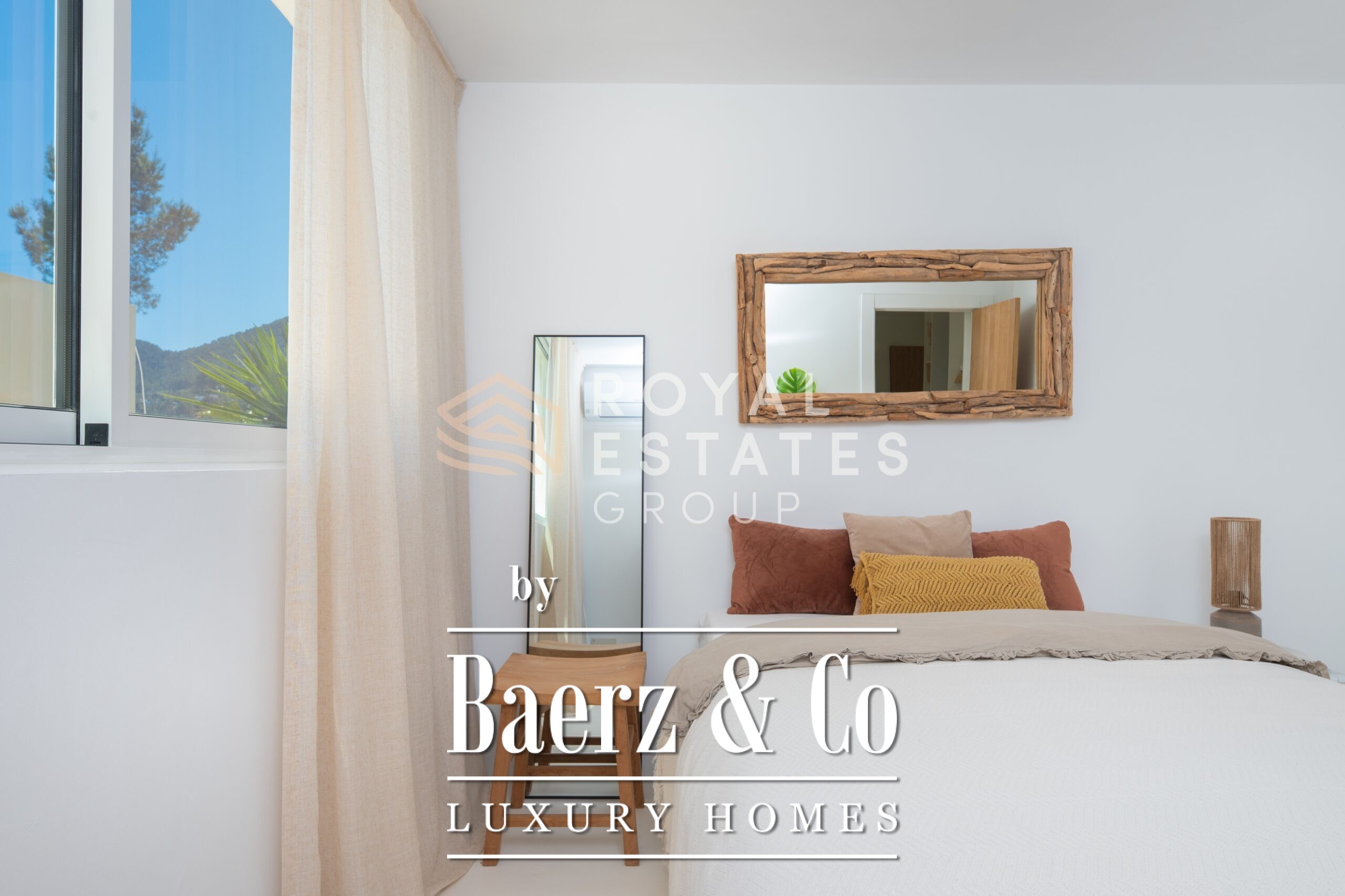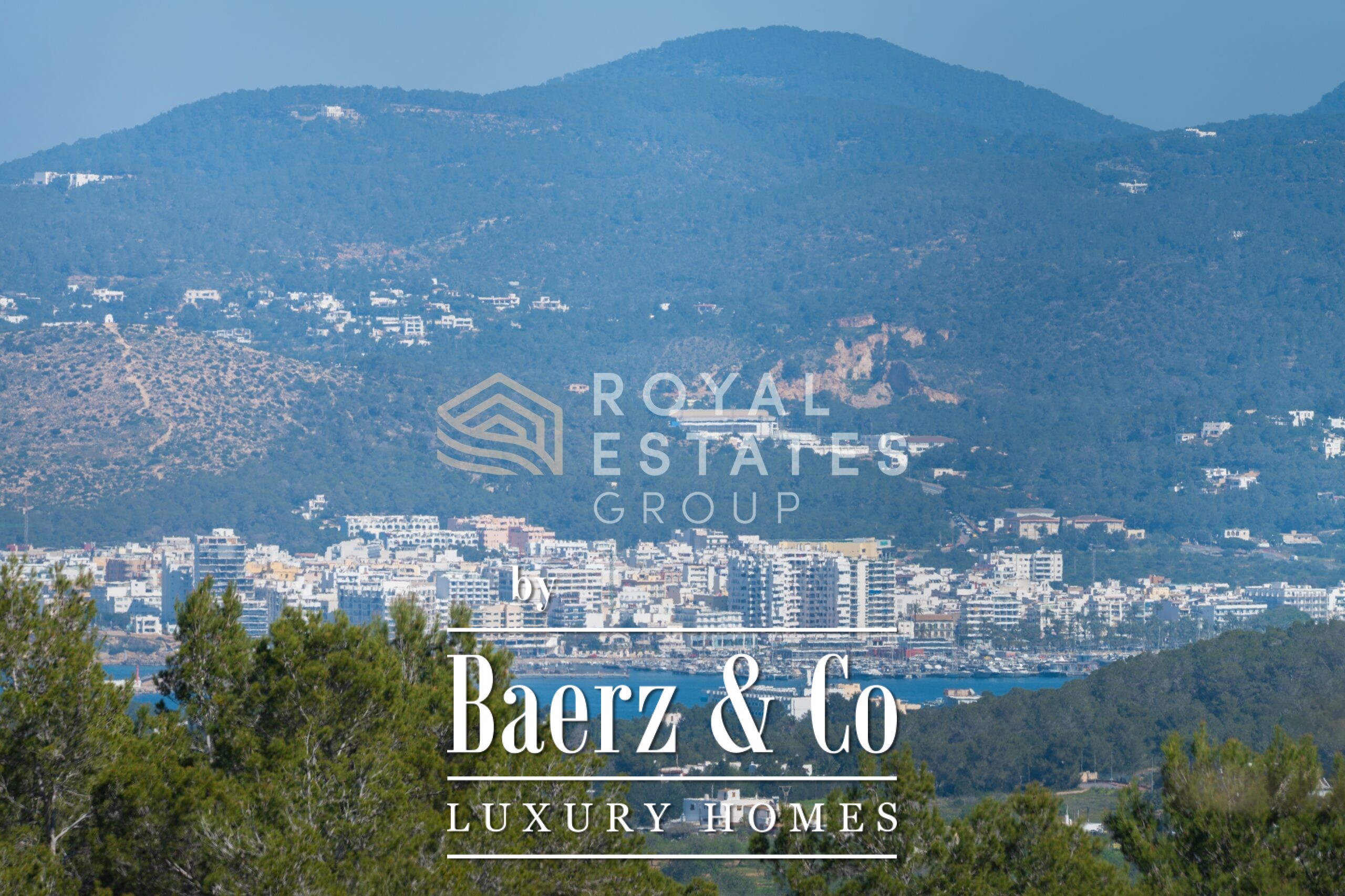 Villa San Jose with panoramic views sits quietly amid the green hills of western Ibiza, offering a rare sense of tranquillity and space. With a generous plot of 19,600 m² and a living area of 330 m², the villa ensures total privacy, surrounded by Mediterranean nature and rolling hills. Well-placed vantage points across the grounds showcase sweeping views over the landscape, with subtle glimpses of the distant sea.