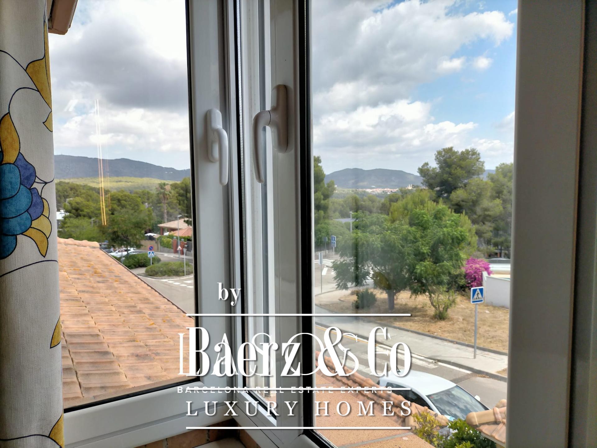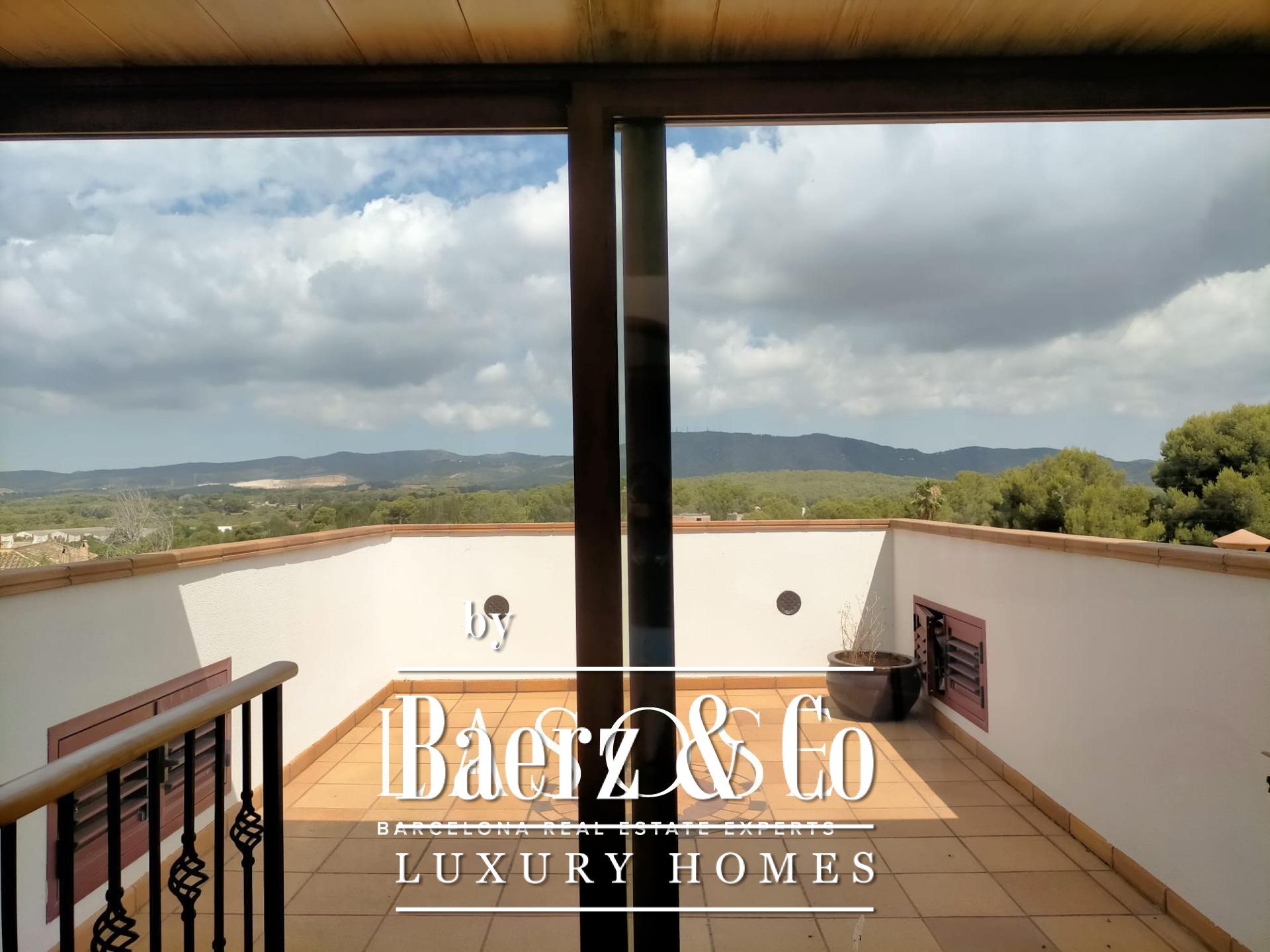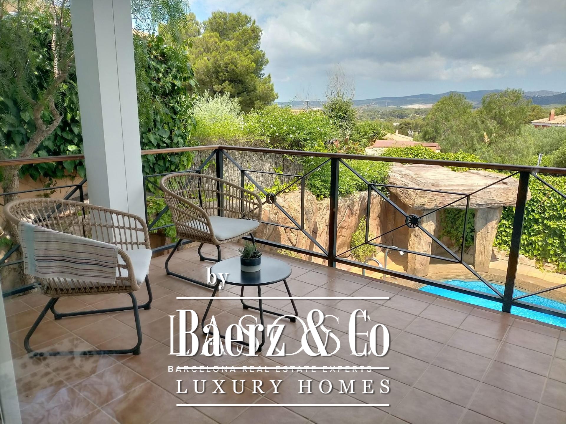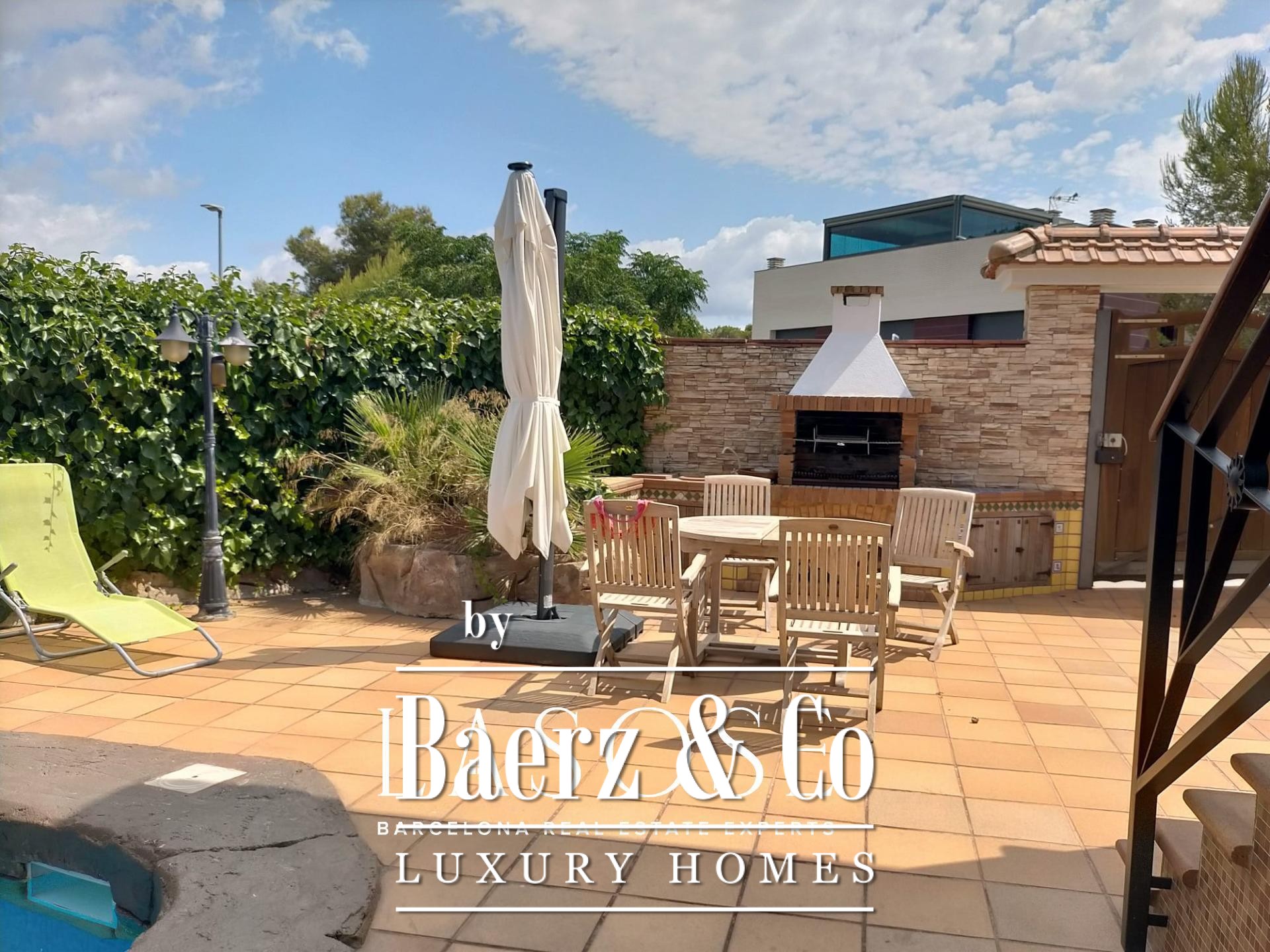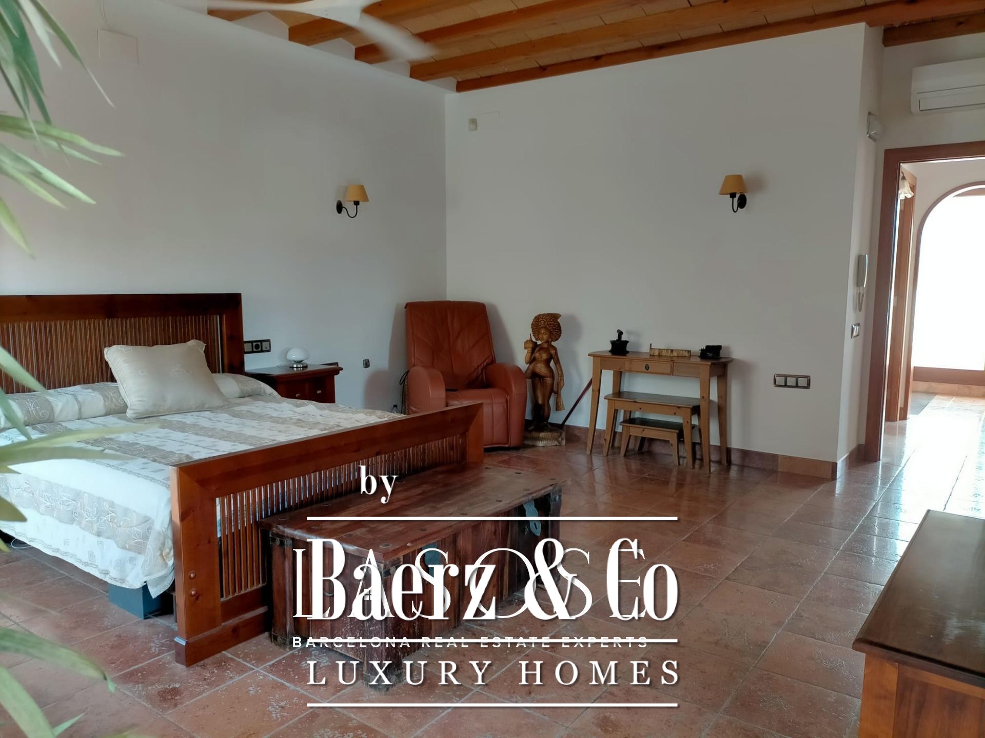 Villa Sant Pere de Ribes is quietly positioned in the esteemed Els Cards residential area, set between Sitges and Sant Pere de Ribes, where privacy and panoramic views define every living moment. This five-bedroom, three-bathroom villa blends traditional Spanish architecture with contemporary refinement. Recently renovated interiors preserve authentic details such as arches and natural textures, while bringing in clean modern lines and warm tones. The open-plan main floor flows across kitchen, dining and living spaces, illuminated by abundant sunlight from windows on two sides. A statement fireplace centers the living area, offering an inviting gathering point year-round.