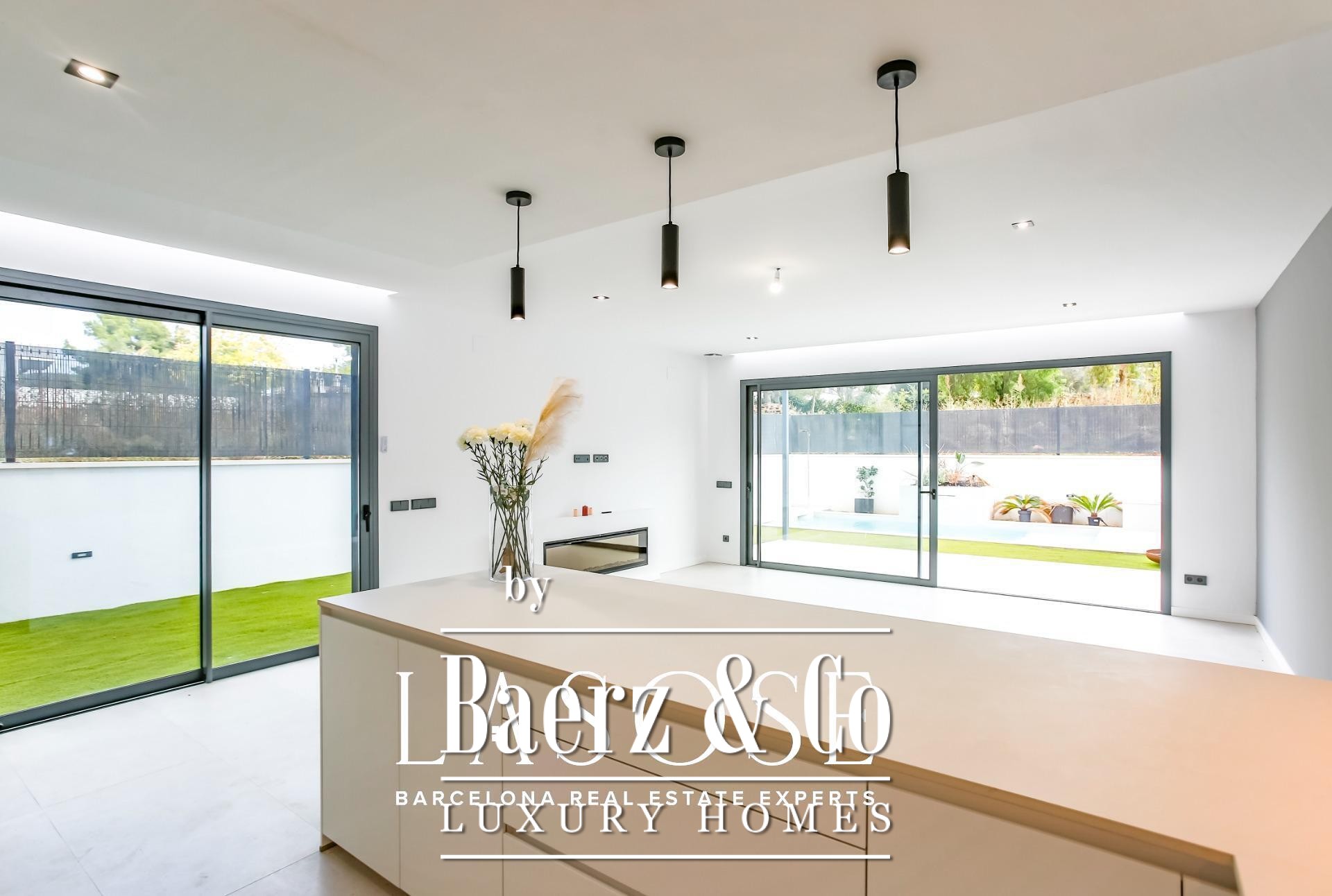 LASOSE PROPIEDADES are delighted to present this modern villa, where your dream Mediterranean lifestyle can start. It is perfectly located just minutes from the center of Sitges and close to international schools, all essential services, and transport connections. Designed for comfort, functionality, and family living, this home offers a peaceful retreat with everything you need within easy reach.. Over 200 m² of built area, the property features 5 bedrooms and 3 bathrooms, offering plenty of space for every member of the family. The open-plan kitchen and dining area create a bright and welcoming space to enjoy daily life together, while the spacious living room opens directly to the garden, filling the home with natural light throughout the day.. . Step outside to your private outdoor space — a garden, terrace, and swimming pool that invite you to enjoy the Mediterranean climate year-round. Whether you’re relaxing by the pool, hosting a barbecue, or watching the kids play, this home provides the perfect setting for both quiet moments and lively family gatherings. The property also includes a garage and ample storage space.. . Built with contemporary architecture and high-quality finishes, the house stands out for its clean lines and modern design. Thanks to its energy-efficient construction, solar panels, and aerothermal system, it combines comfort with sustainability — reducing energy costs while contributing to a more environmentally friendly lifestyle..