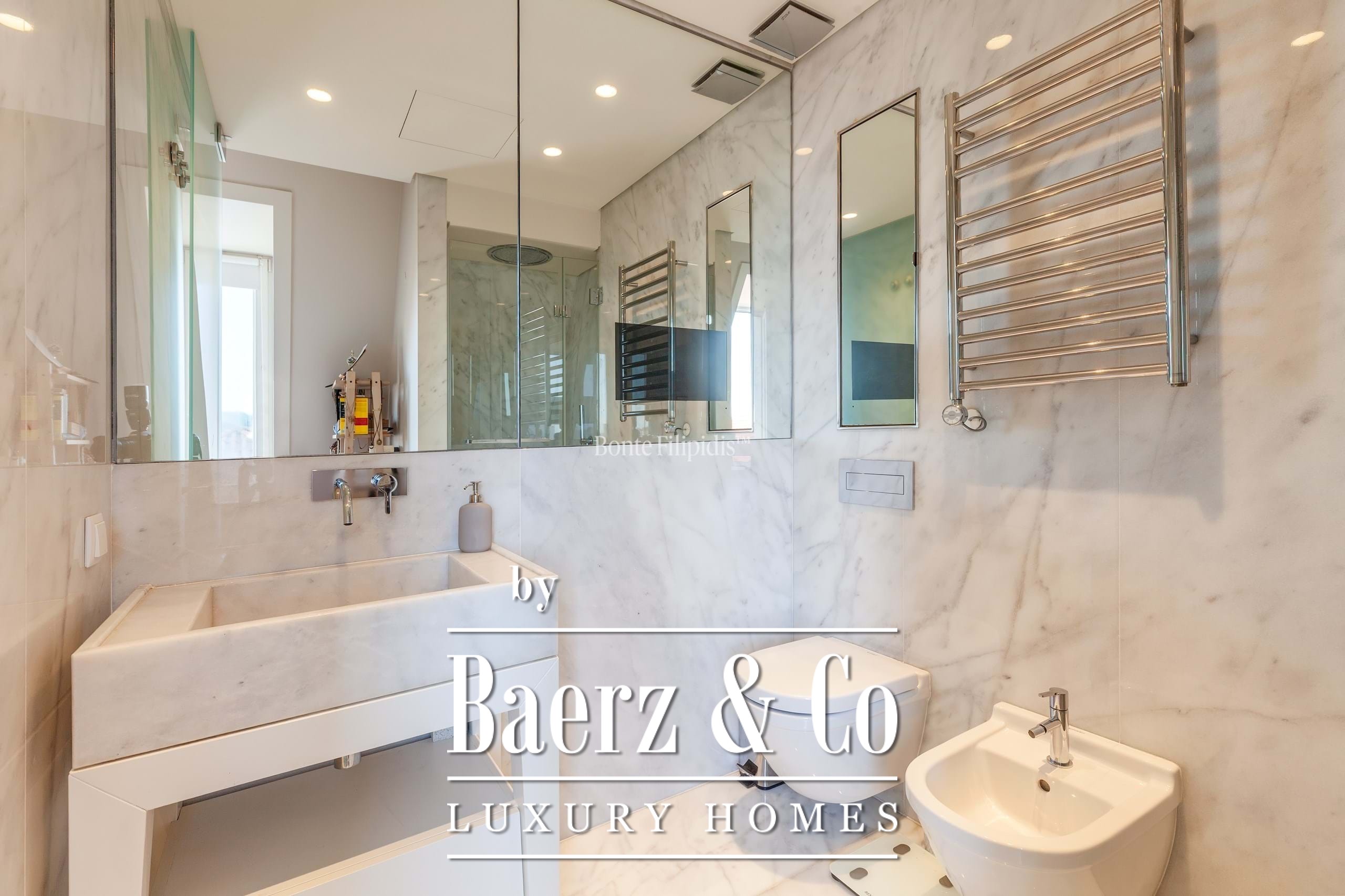 The social heart of this penthouse is its upper level, where a generous 52.88 m² living room flows into a 10.33 m² kitchen, equipped with premium appliances and refined finishes. Underfloor heating, air conditioning, and integrated home automation enhance daily living, while a state-of-the-art security system provides peace of mind.