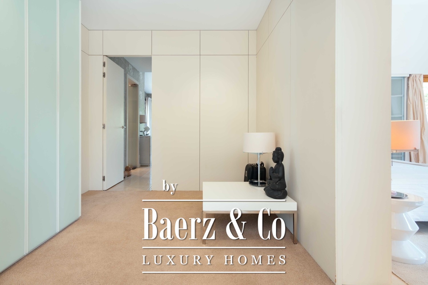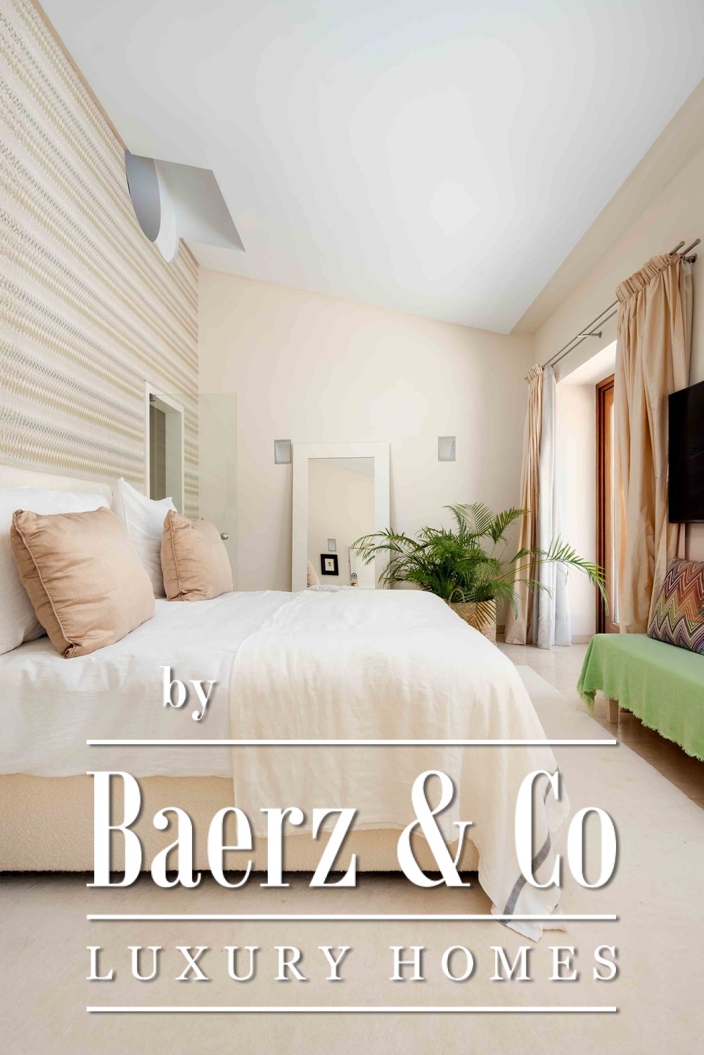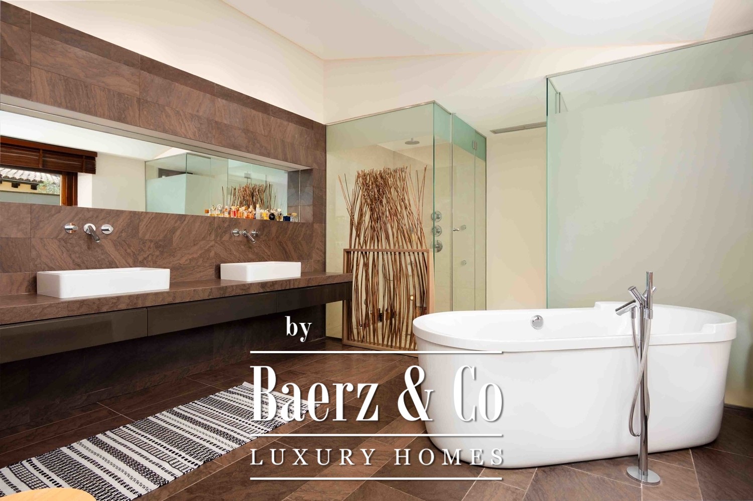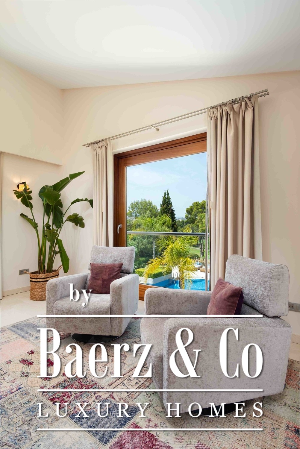 This luxury villa Santa Ponça is a statement of refined living within an exclusive gated community in Mallorca. Upon arrival, a private driveway unfolds through lush Mediterranean gardens, accommodating seven vehicles and an integrated electric charging station. The entrance signals both serenity and understated grandeur, inviting you into 851 m² of carefully composed interiors that allow light and space to define the experience.