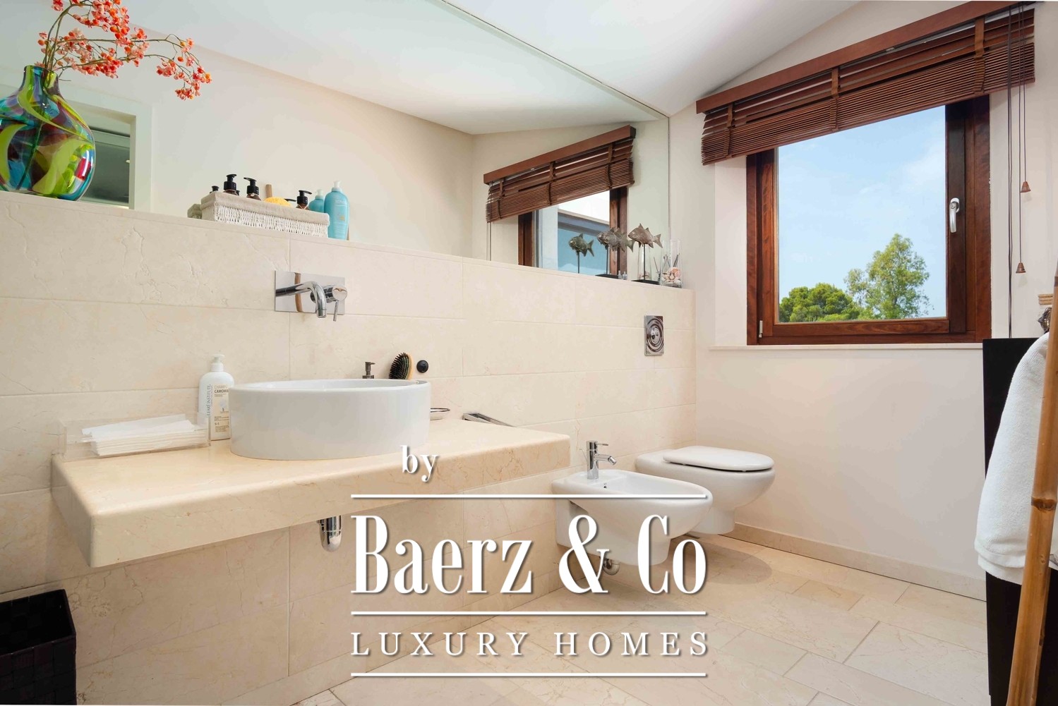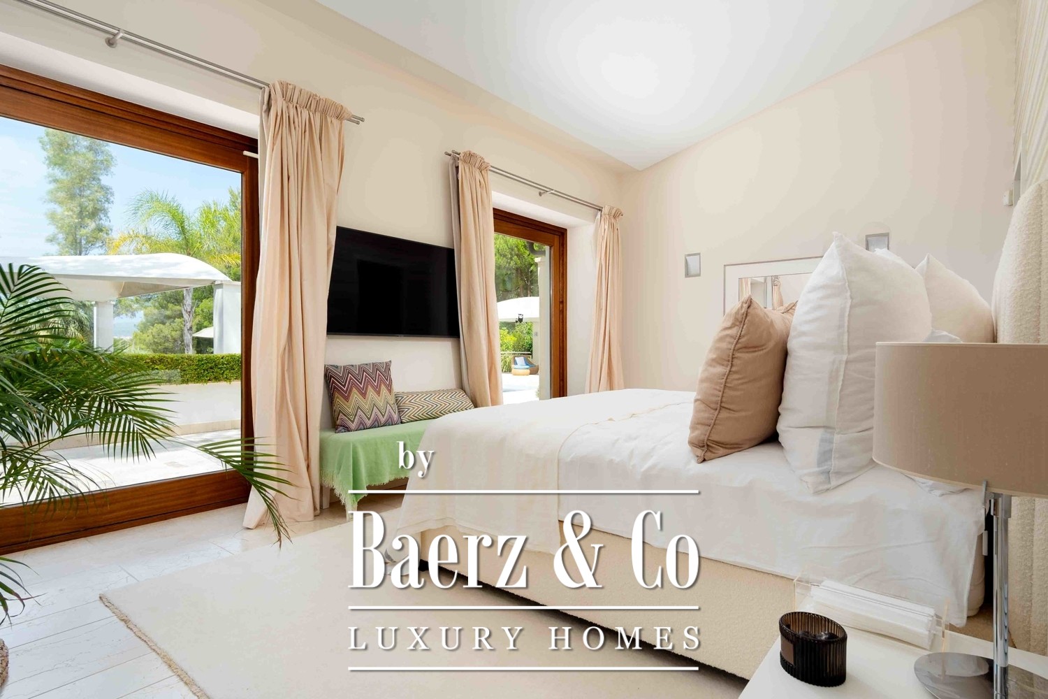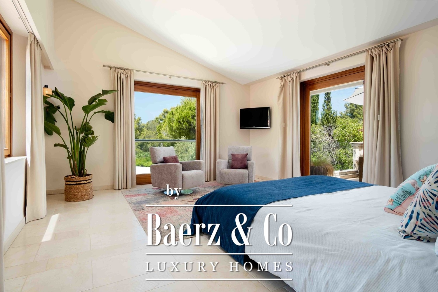 A fully independent guest house with two bedrooms and two bathrooms delivers complete privacy and comfort, ideal for hosting friends or family. Plans allow for further customization, with space to create a cinema, gym, spa, or bespoke wellness retreat. Eight bathrooms and amenities such as air conditioning contribute to ease and comfort throughout. This luxury villa for sale in Santa Ponça is an address where privacy, quality, and timeless design are woven into every detail.
