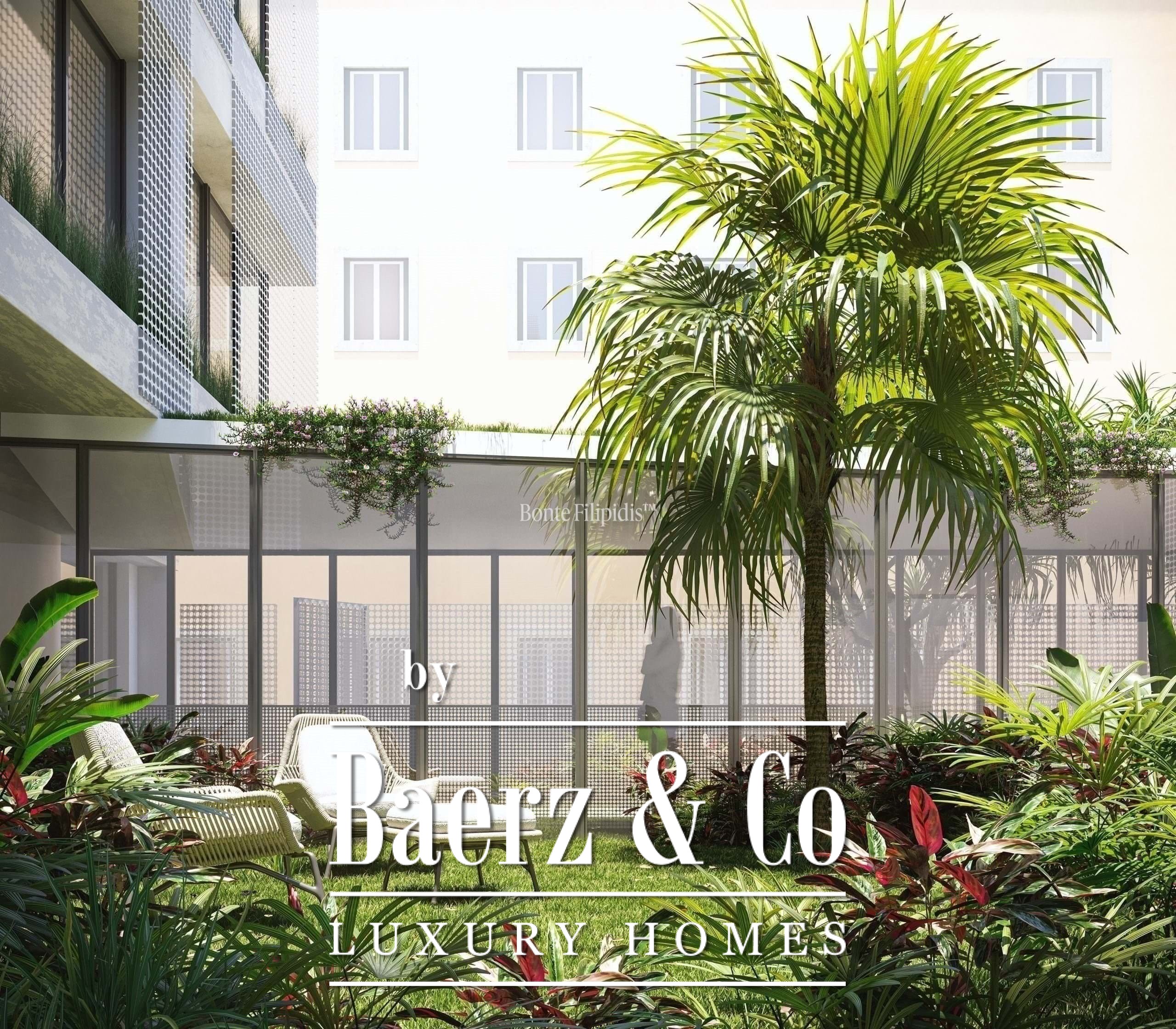 Duplex apartment Santo António is set within Aura Residences, just moments from Avenida da Liberdade, one of Lisbon’s most celebrated addresses for luxury and cosmopolitan life. This 2 bedroom, 3 bathroom duplex quietly claims 105 m² of refined living space, elevated by garden views and contemporary finishes across two floors. The building’s modern architecture harmonizes with traditional forms and green spaces, including a dedicated 180 m² communal garden, an inviting pool, a gym, and private parking.