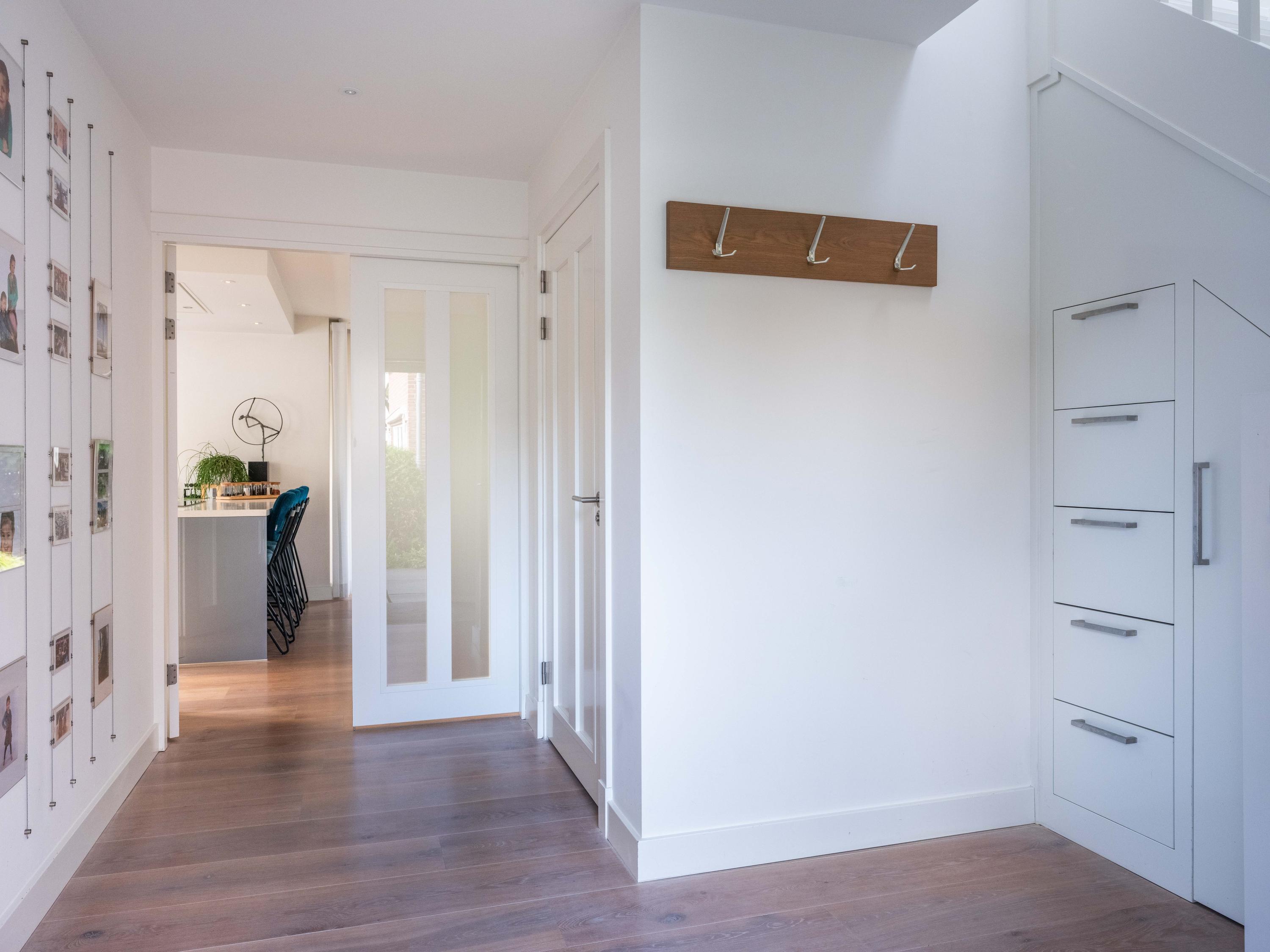 Upon entering, you will immediately notice the spacious hall, with meter cupboard, bathroom and stairs to the upper floor. There is a practical storage space under the stairs. The bathroom is spacious and equipped with a shower, toilet, washbasin and radiator.