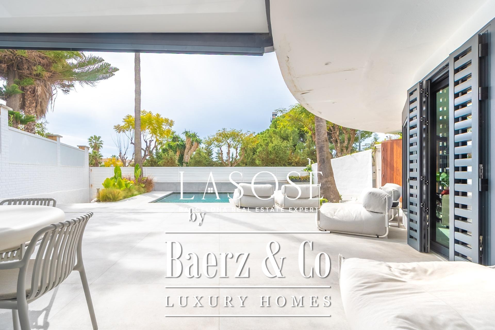Villa Sitges Vallpineda introduces elevated Mediterranean living in a discreet residential setting. This 100 m² single-storey villa has been fully renovated to precise contemporary standards, offering two bedrooms and two bathrooms that flow seamlessly into generous living spaces. The property stands on a 278 m² plot, framed by stately palm trees and enhanced by open views, where tranquil indoor and outdoor environments merge. Floor-to-ceiling windows illuminate the main living and dining area, integrating naturally with the terrace and private pool—ideal for family gatherings or quiet reflection.