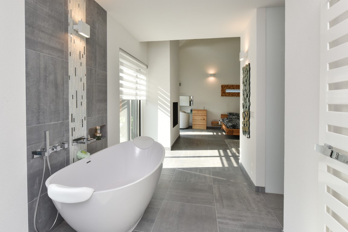 De 2e en 3e slaapkamer bevinden zich aan de achterzijde, direct boven de living. De beide slaapkamers hebben een volwaardige indeling waarbij de grote kamer beschikt over een complete badkamer en-suite en beide slaapkamers toegang hebben tot het balkon met zicht over de tuin en het zwembad. Mocht u meer slaapkamers wensen dan is een andere indeling vrij eenvoudig te realiseren en blijven de afmetingen per kamer nog steeds volwaardig.