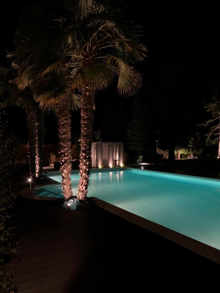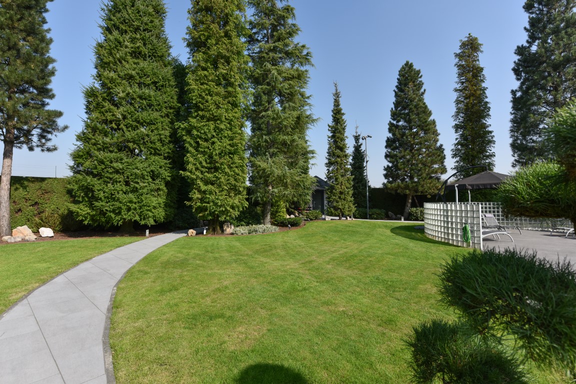 Ook buitenshuis is aan werkelijk ieder detail aandacht besteed en zijn vele luxes aanwezig. Denk hierbij aan het verwarmd zwembad, een jacuzzihoek met buitendouche en buitenhaard, de sfeervolle veranda aan de achterzijde met gastafelhaard, een 2e veranda aan de zonzijde met buitenkeuken, hoogwaardig groen rondom, grondpomp met beregeningsinstallatie (roestvrij water), keramisch straatwerk, een hout gestookte sauna, smaakvolle tuinverlichting, etc.