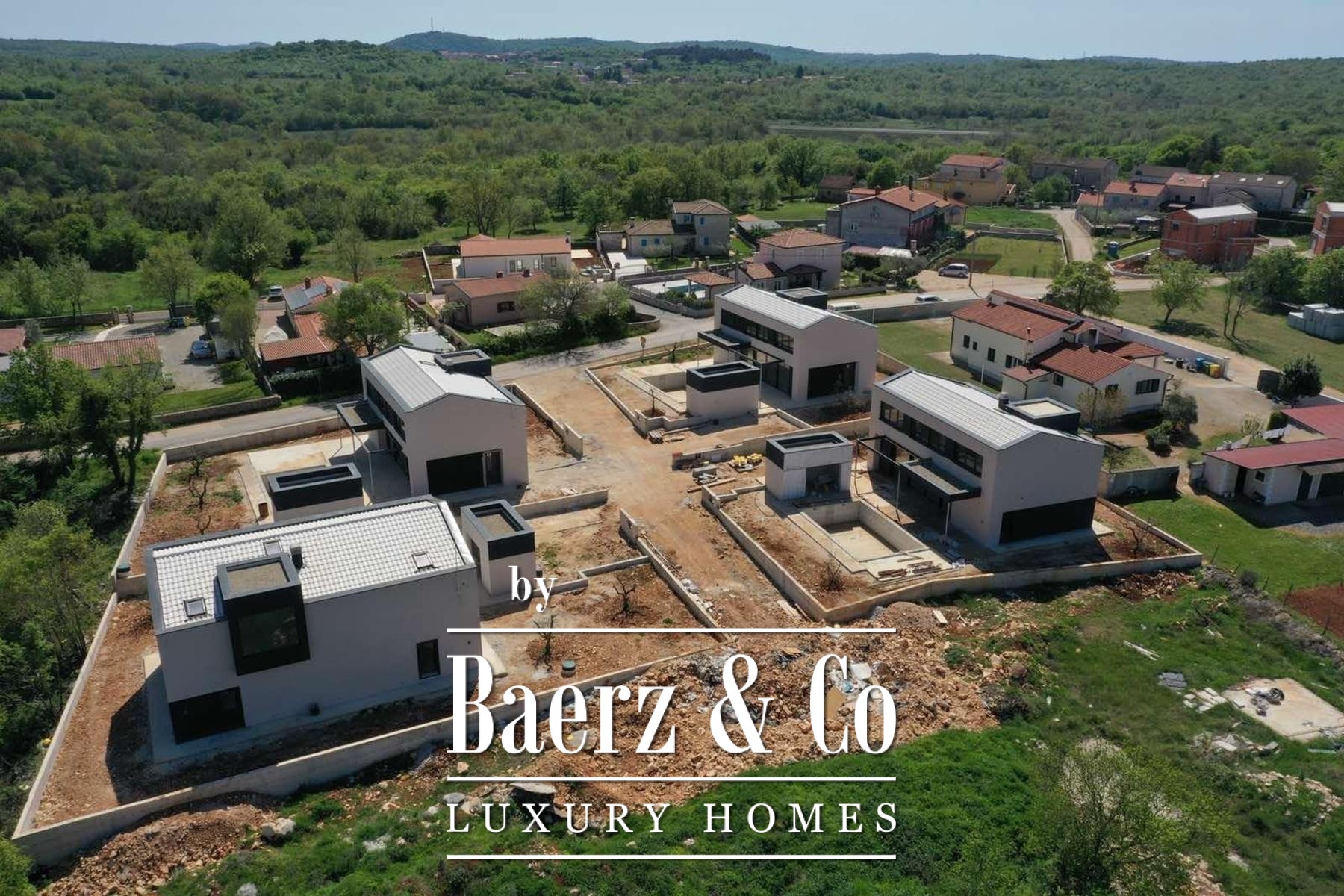 These exclusive villas are located in a small town on the west coast of Istria near the beautiful cities of Poreč and Rovinj. East-south-west orientations. Villa with a net usable area of 197 m2 (first floor with floor plan area of 97 m2, second floor with floor plan area of 99 m2, ), on a plot of 810 m2, divided into two floors. First floor: