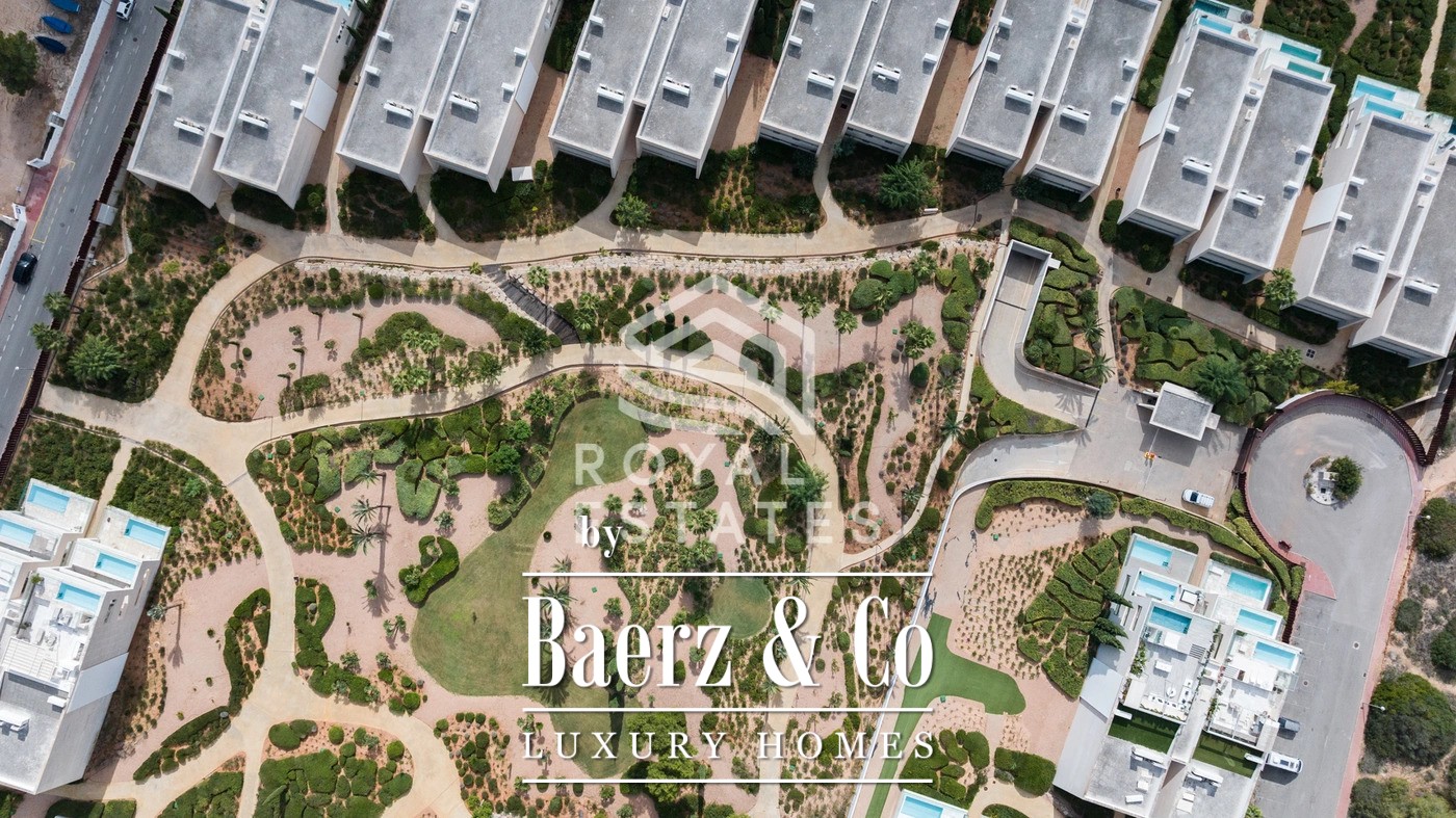 This exceptional duplex penthouse is located in the exclusive Es Pouet residential complex, one of the most prestigious and secure communities on Ibiza. Set in the beautiful bay of Talamanca, just minutes from Marina Botafoch and Ibiza Town, this property represents the ultimate expression of modern island living. With breathtaking panoramic views over the Mediterranean Sea and the historic silhouette of Dalt Vila, it offers a unique combination of luxury, privacy, and convenience. Occupying a total built area of approximately 428 m2, with 347 m2 of usable interior space, this residence has been thoughtfully designed to maximize natural light and create a seamless flow between indoor and outdoor living. The main floor features a spacious open-plan living and dining area with floor-to-ceiling windows that open onto a large terrace overlooking the bay. The contemporary kitchen is fully equipped with high-end appliances and an elegant kitchen-office layout that blends functionality with style. The property includes four generous bedrooms, three with its own en-suite bathroom, ensuring complete privacy and comfort for residents and guests alike. The master suite is particularly impressive, with direct terrace access and stunning sea views. Additionally, there is a guest toilet and a separate laundry room for added convenience. The interiors are defined by clean lines, natural tones, and premium materials that reflect understated elegance and quality craftsmanship. An architectural highlight of this penthouse is its spectacular