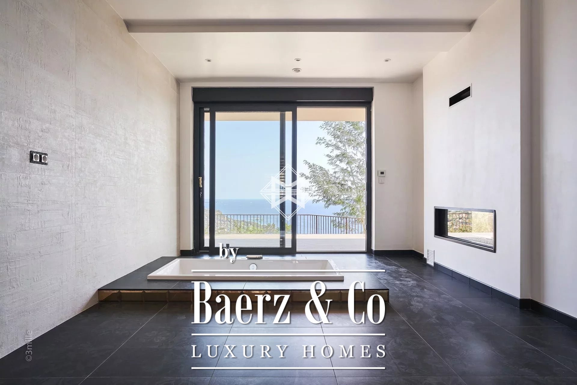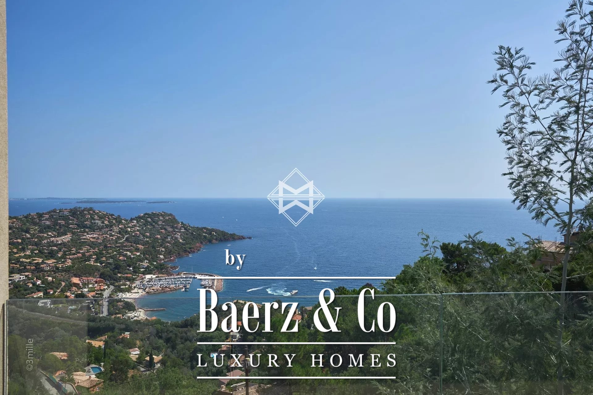 Villa Théoule-sur-Mer with panoramic sea view stands on the tranquil hillside of Trayas, within a gated domain that ensures utmost discretion and privacy. This ultra-contemporary property encompasses approximately 255 m² of living space, featuring five en-suite bedrooms and generous open-plan areas designed to celebrate the uninterrupted coastal outlook.
