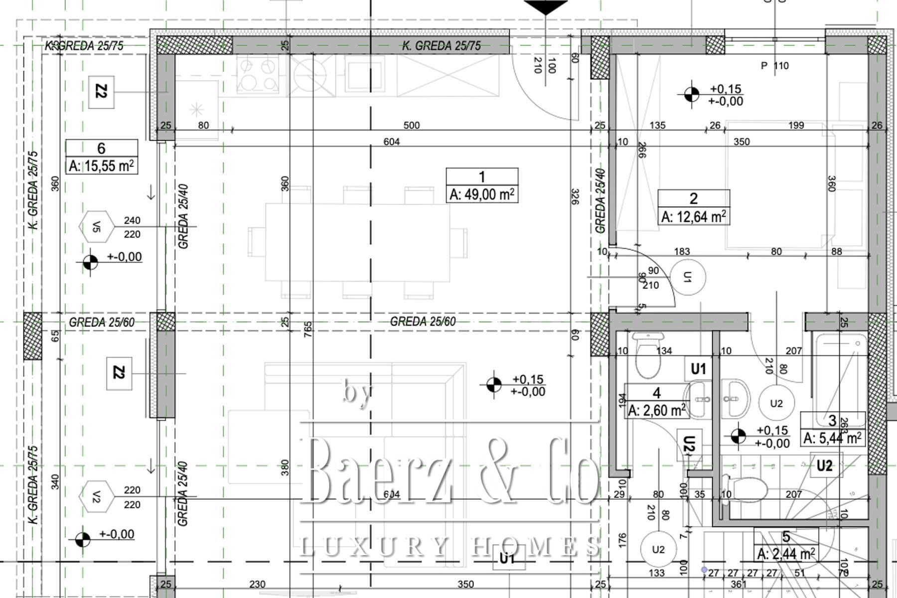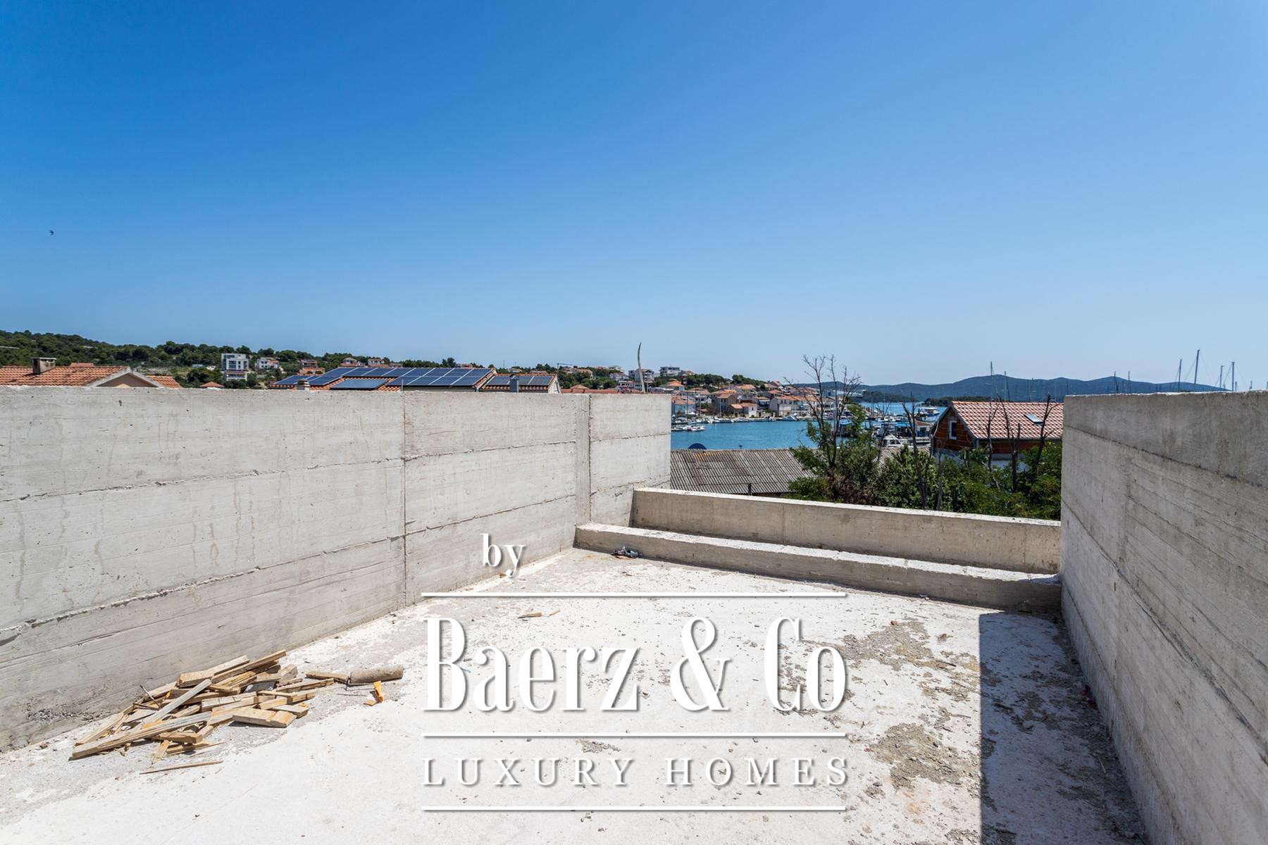 a sea view. On the second floor there is a toilet, a room with technical equipment, and a large terrace with a swimming pool. In the yard of the house there are two parking spaces. The house has large glass surfaces, so it is abundant in natural light.The house is located in a great location, only 50 meters from the sea, in the very center of the town. All necessary amenities are near the house. If you own a boat, the marina is right in front of the house.We are at your disposal for all other information.