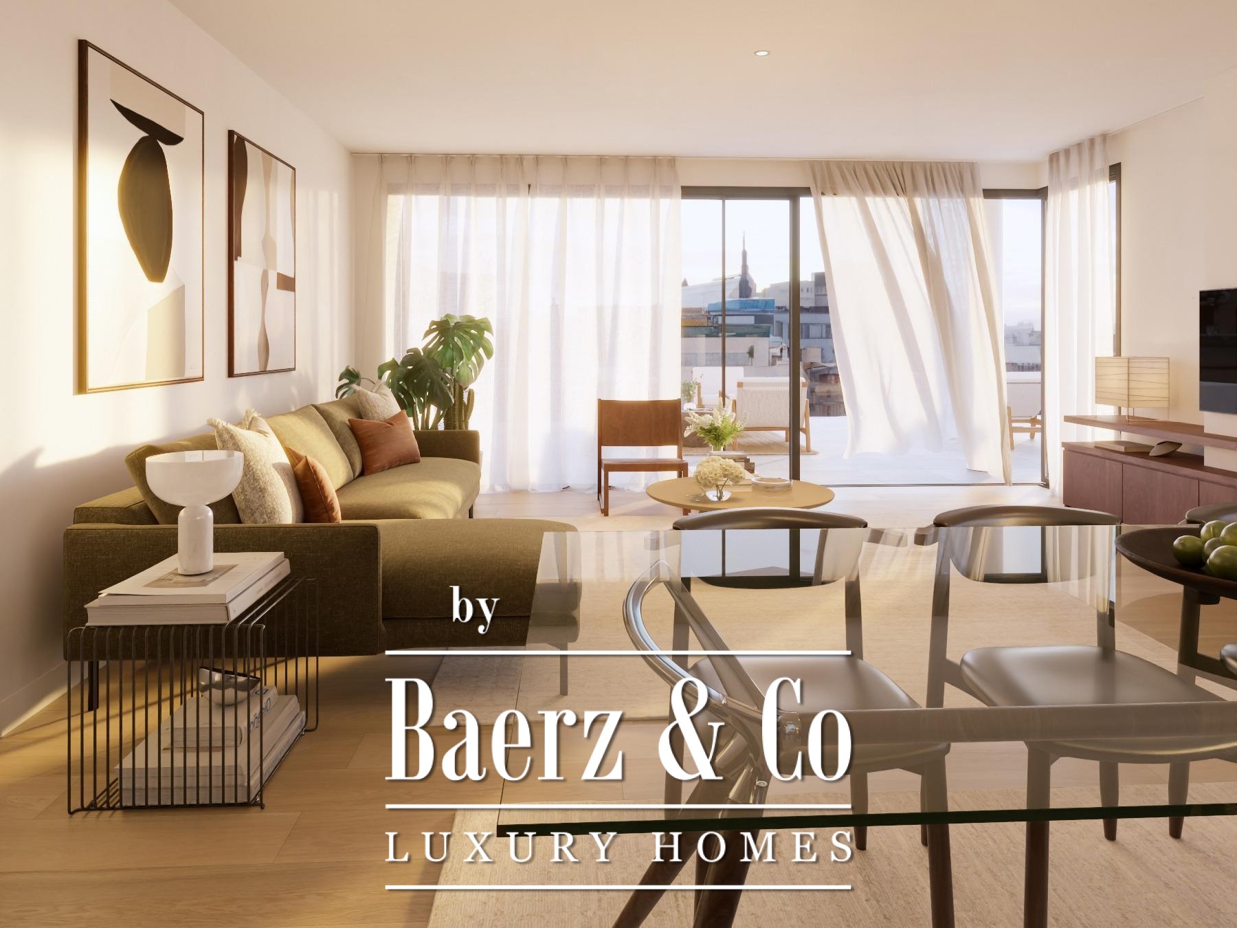Penthouse Valencia stands as a quietly commanding presence in one of the city’s most prestigious quarters, moments from the City of Arts and Sciences. This penthouse comprises 254.27 m² total built area, including a 148.66 m² apartment and a private terrace of 105.61 m², each detail calibrated for contemporary living with privacy and light. The terrace, seamlessly extending from the living room on the same level, frames the Mediterranean climate as a true part of daily life, creating an open yet intimate spatial rhythm.