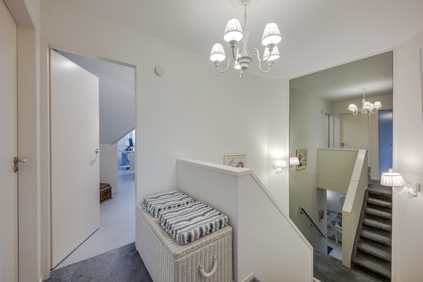 Here you will find three spacious bedrooms, two with dormer windows. The luxurious bathroom (2022) is a real eye-catcher, equipped with underfloor heating, walk-in shower and double sink with cabinet. The floor also features a practical walk-in closet.