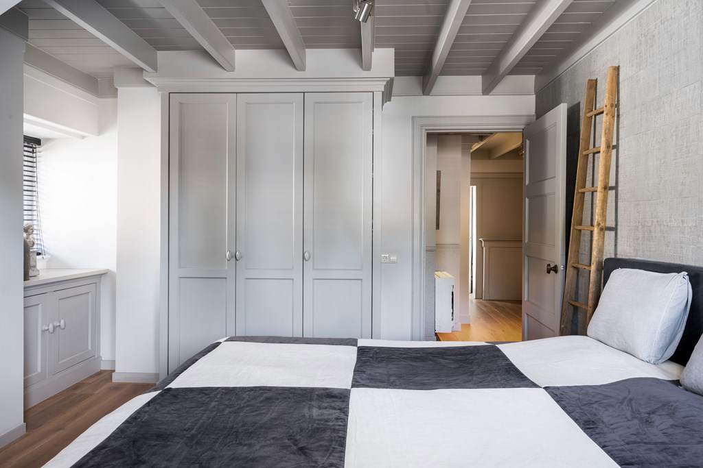 The second floor also offers three bedrooms, each with skylights or dormer windows, allowing ample daylight to enter. The available space has been efficiently used with clever storage solutions and a practical layout.
