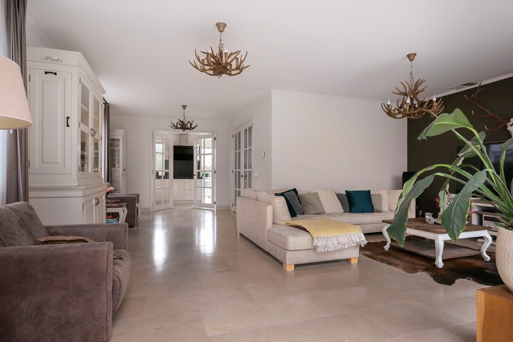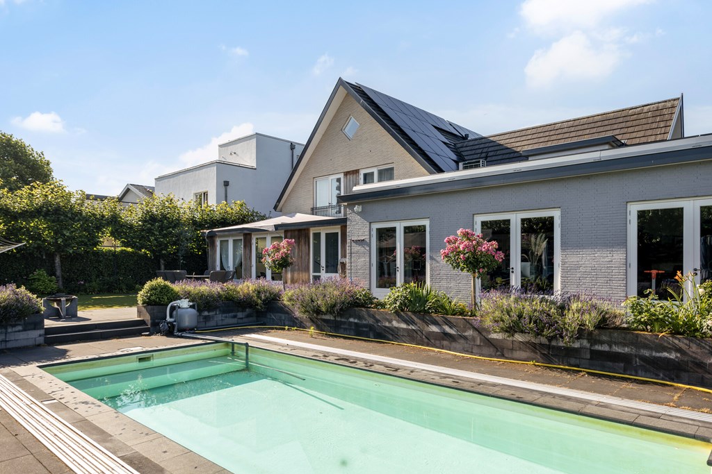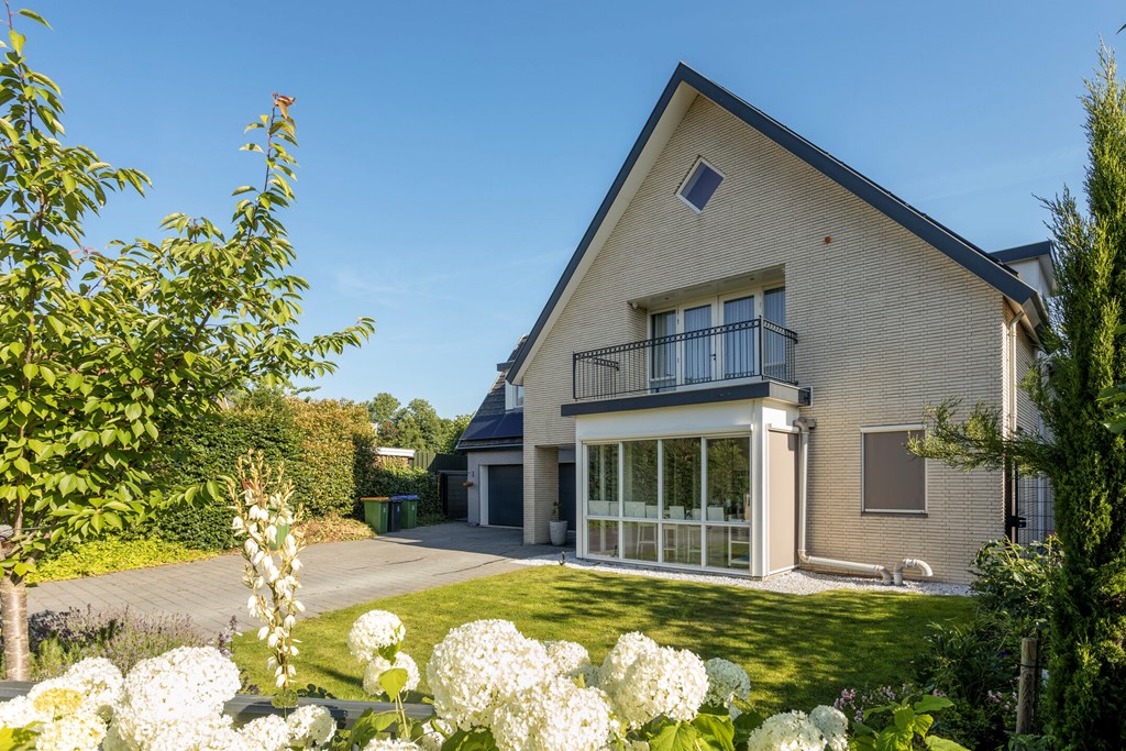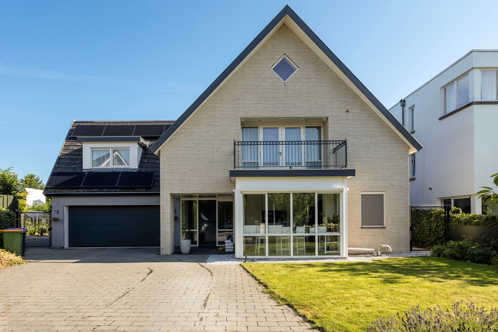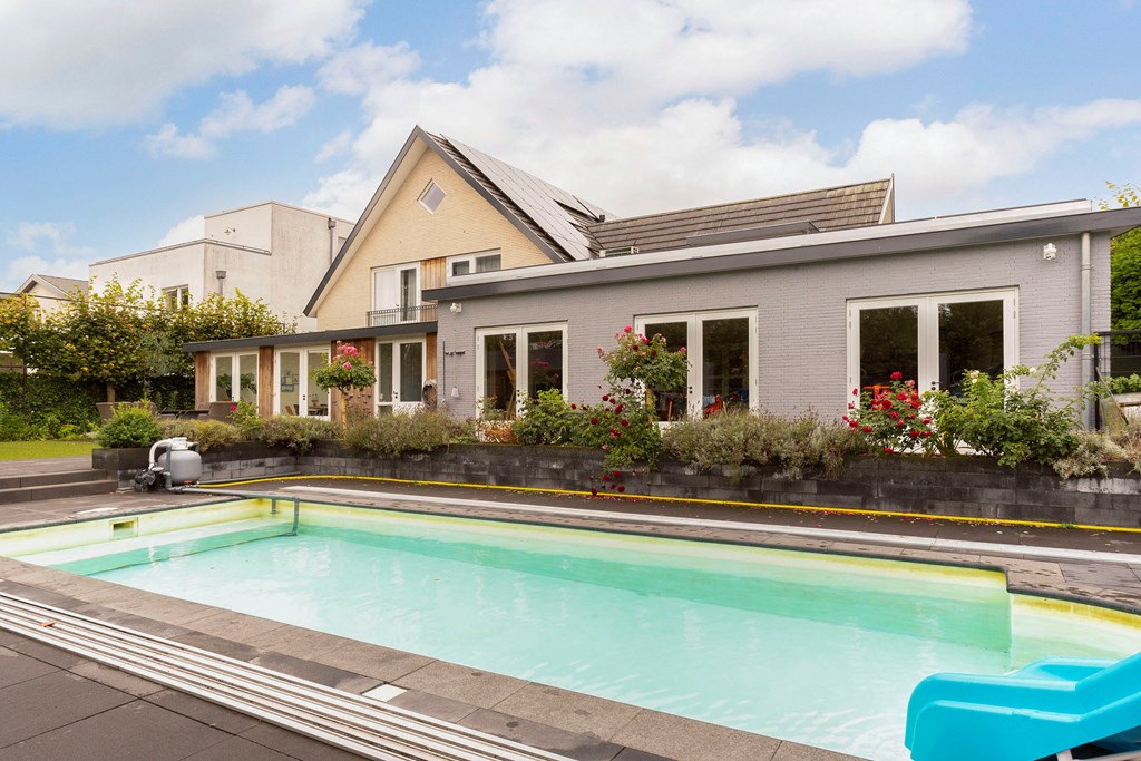 The garden-facing living room with conservatory is wonderfully bright, featuring a roof light and two pairs of French doors to the garden. The live-in kitchen is just as sunny and stands out for its generous, luxurious design. Big family or many guests? With seven bedrooms and three bathrooms, there’s room for everyone. The primary suite also features a balcony and a luxury en-suite bathroom. With a spacious, garden-facing office and a vast souterrain, the home offers countless possibilities. Add a utility room, a large back garden with play area and pool, driveway, and double garage—this is a truly unique villa.