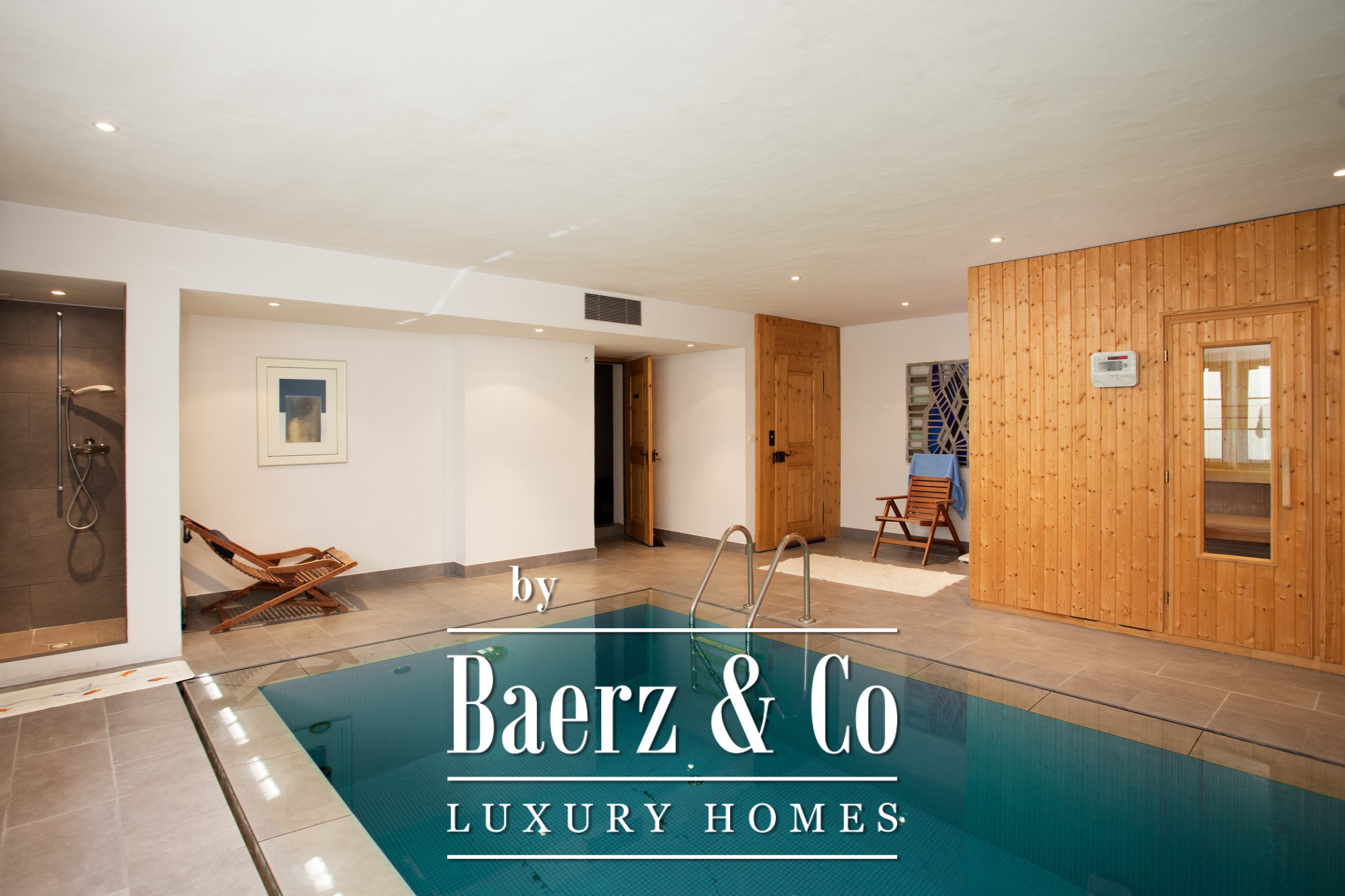 The mountains, a spacious chalet, a swimming pool, a mazot... All this makes you dream? We have for you an exceptional chalet located on the heights of Patier in the popular neighbourhood of Chevillard.The Bleu Ciel chalet welcomes you in its basement where a sublime SPA area is hidden, a large garage for four cars and access to the mazot. Jump in the lift and reach the spacious living room with