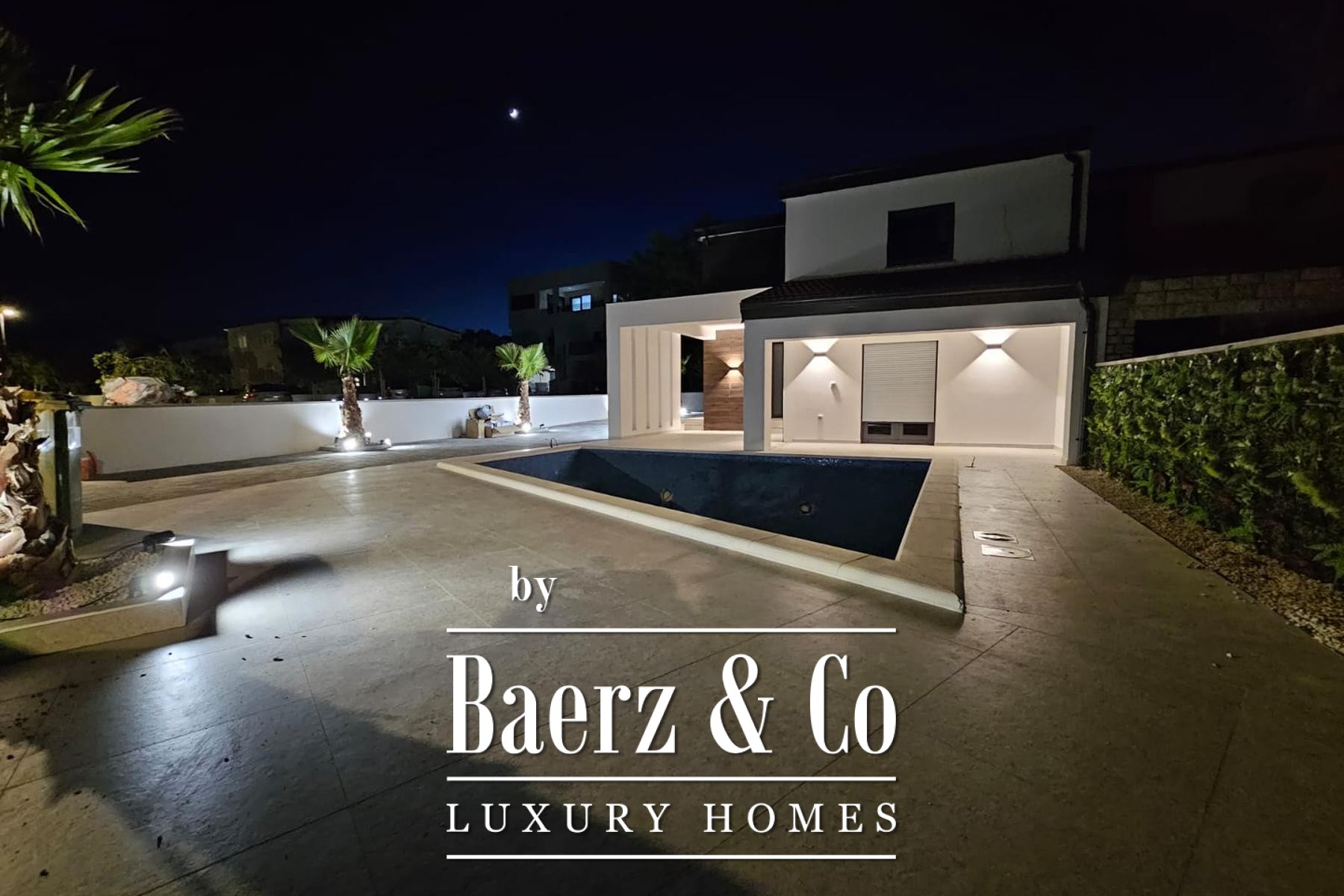 Zadar, Vir - Located in an attractive area near the popular Jadro Beach on the island of Vir, this modern semi-detached house with a heated pool and two completely separate apartments is ideal for multi-generational living or tourist rental. Situated in a quiet street yet within walking distance to the center and the beach, it offers both privacy and comfort.Key features