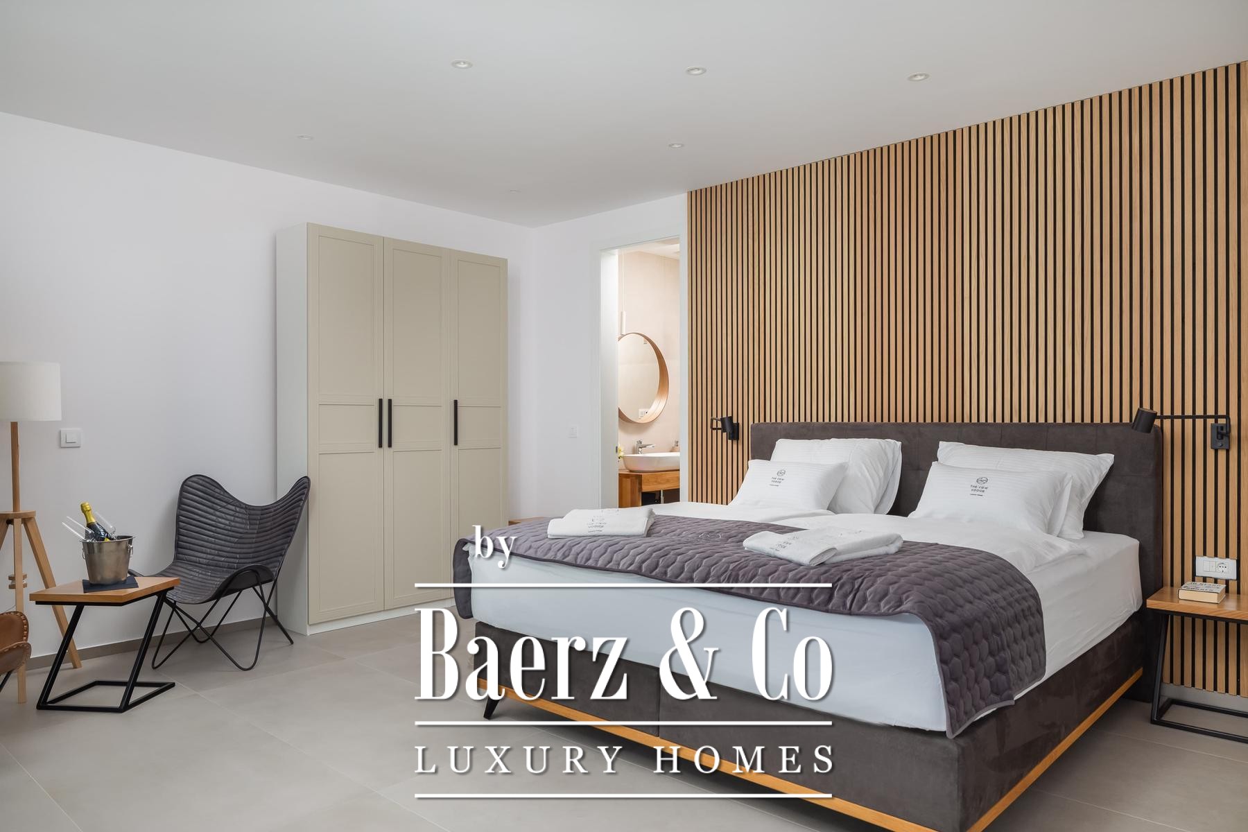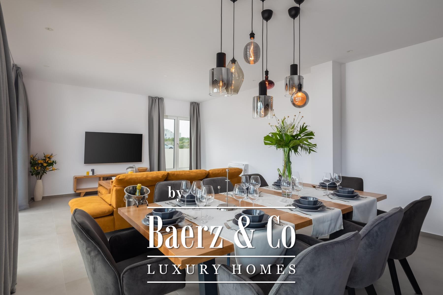 a terrace with a sea view.The villa is superbly equipped, and we would like to highlight the following: underfloor heating connected to a heat pump, an electric car charger in the garage, aluminum joinery, Miele kitchen appliances, central vacuum cleaner, saltwater pool with counter-current swimming system, smart remote home control system, summer kitchen with professional appliances, preparation for solar panels on the roof, electric bicycles...A beautiful garden and sunbathing area surrounds the villa. In addition to the garage, the villa has parking for 3 cars. The microlocation of the villa is excellent, in a very quiet place, yet only 900 meters from the sea.All other information on request.