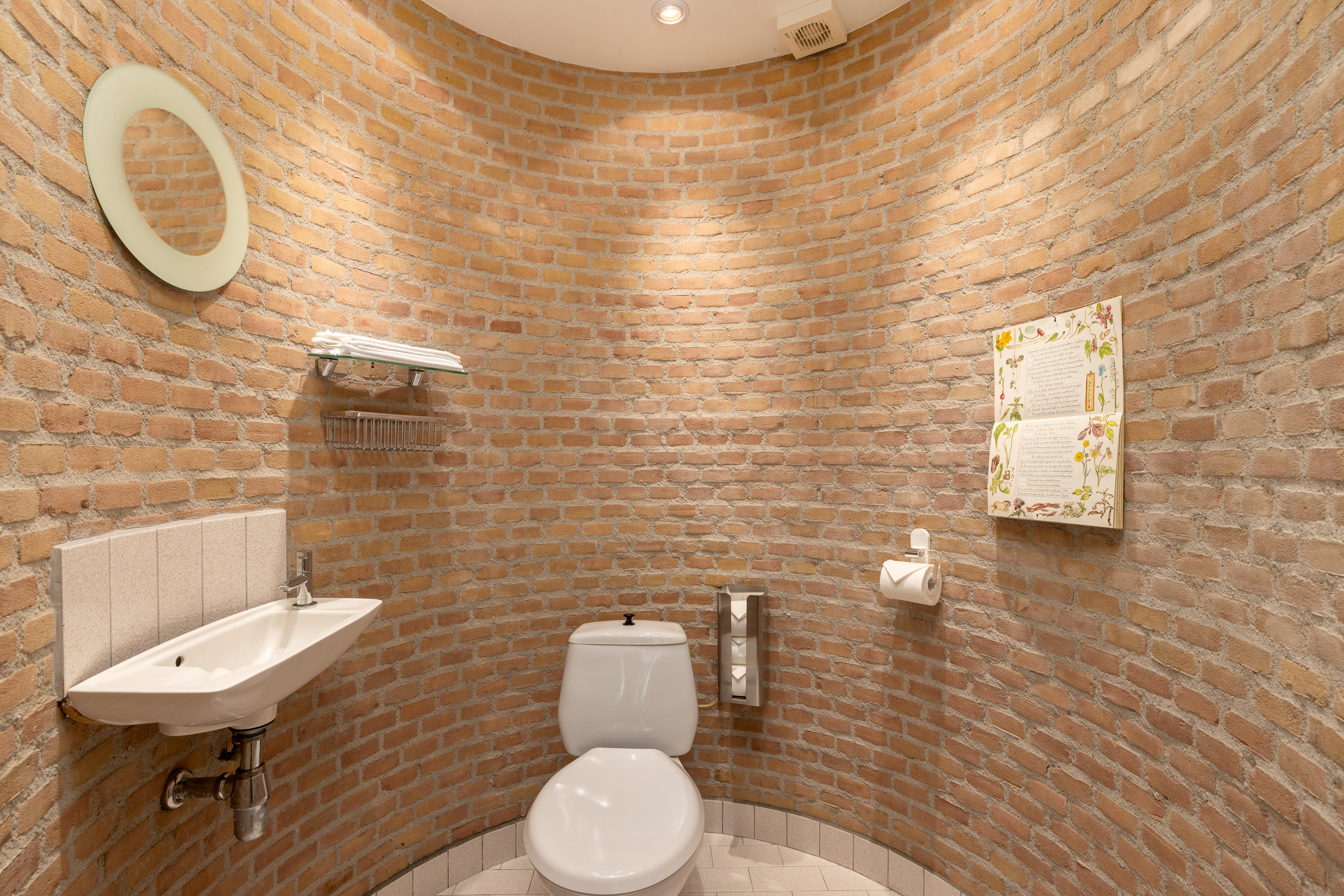 Upon entering through the spacious entrance hall with cloakroom, toilet, and built-in cupboards, you enter the spacious living room with fireplace and several sitting areas.