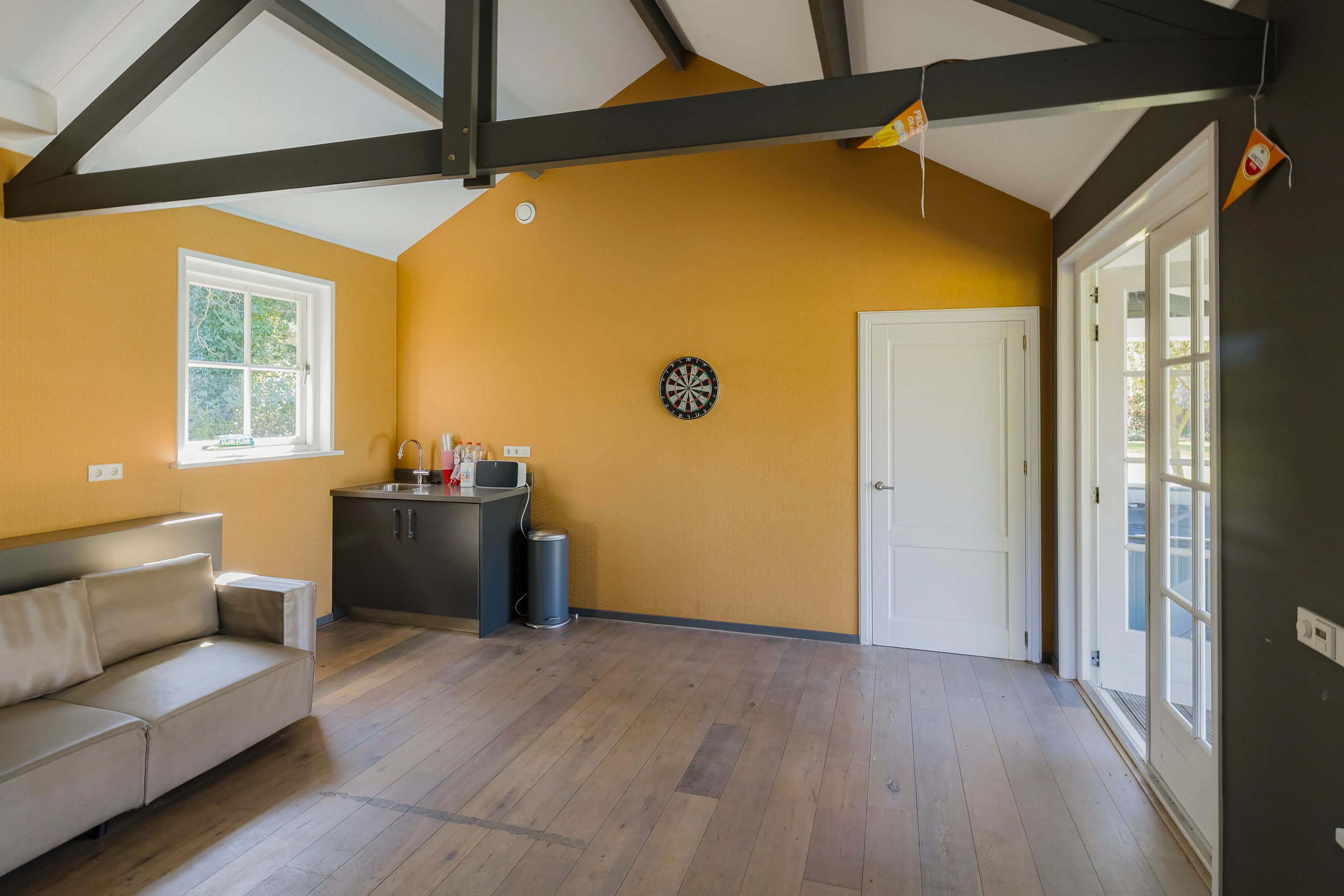 The garden borders directly on through water and has its own dock, with space for 2 to 3 boats. So you can easily sail to the Kagerplassen or to the canals of Leiden.