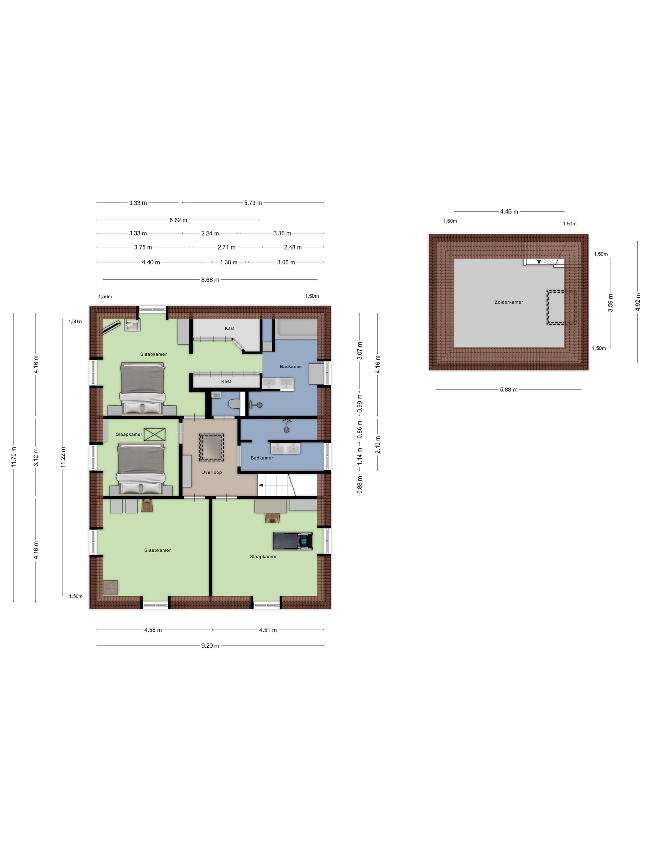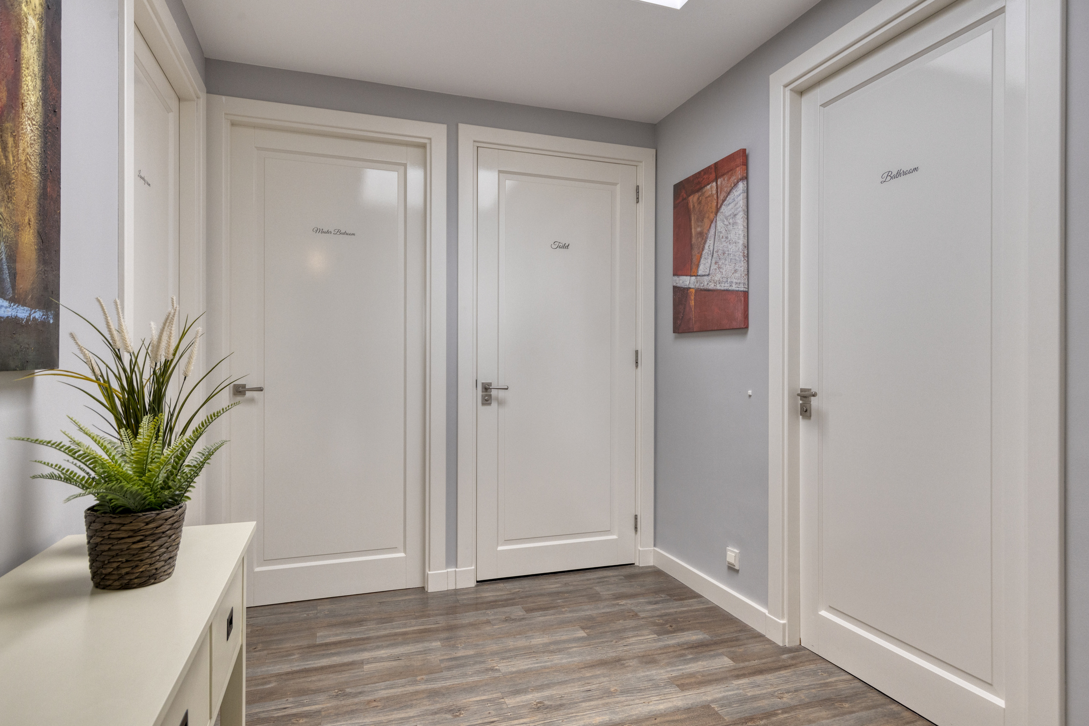 Spacious hallway: with skylight and access to the bedrooms and central toilet.