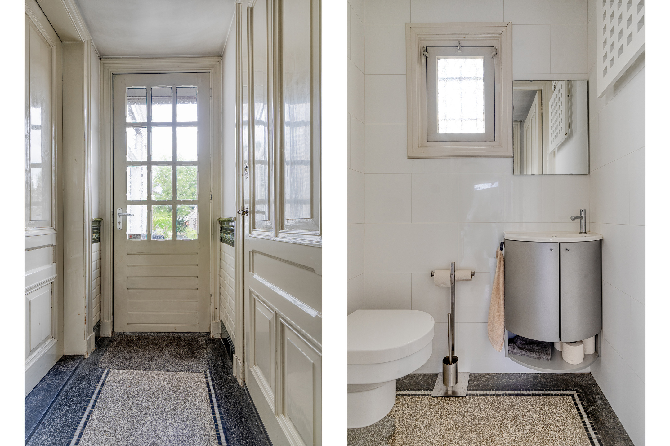 achter portaal met deur naar tuin/terras;