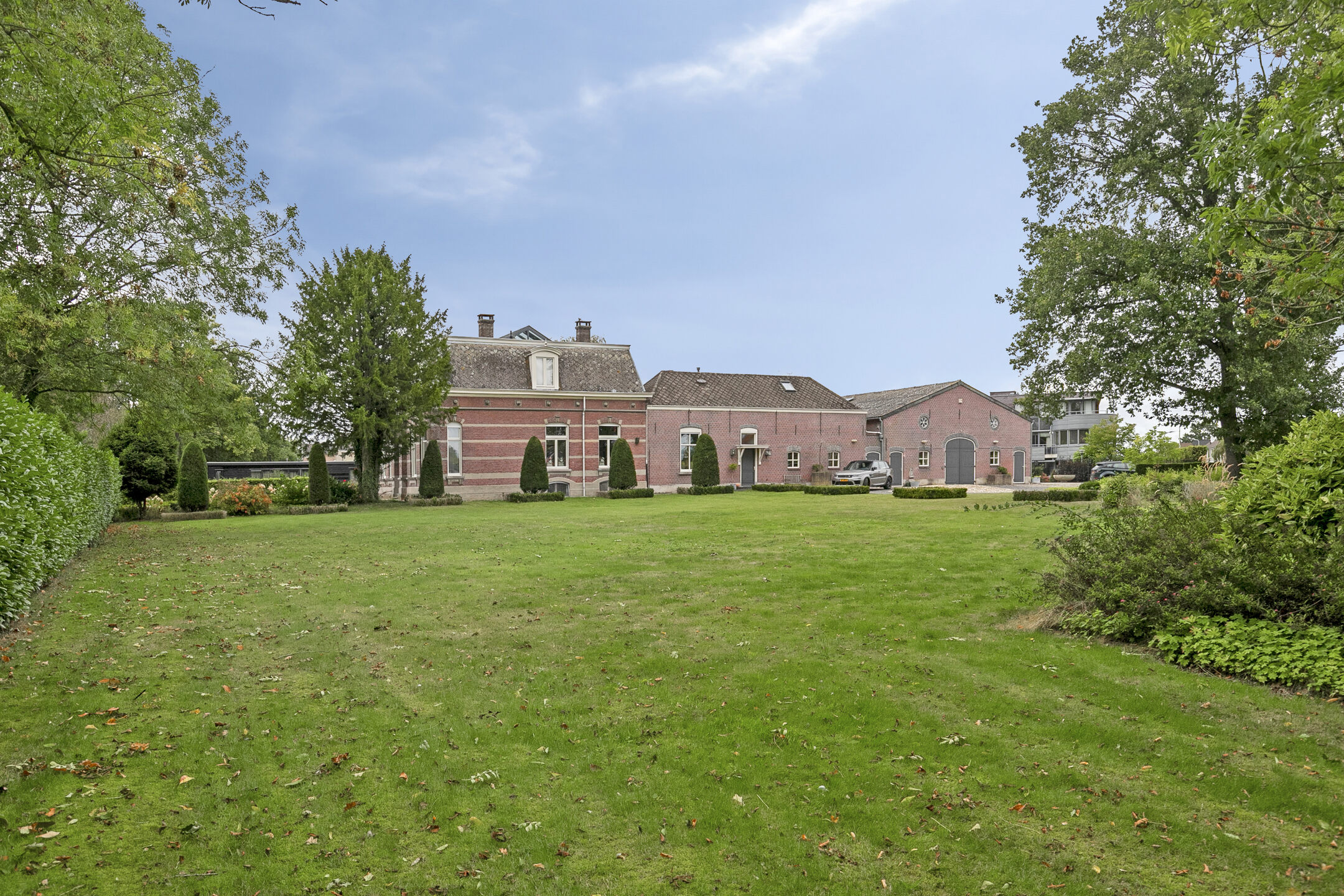 Het fraaie bijgebouw is voorzien van een ontspannings- en wellnessruimte met een bar, overdekt zwembad, sauna, was- en douchegelegenheid, fitness-ruimte, 3 royale garages en een berging.