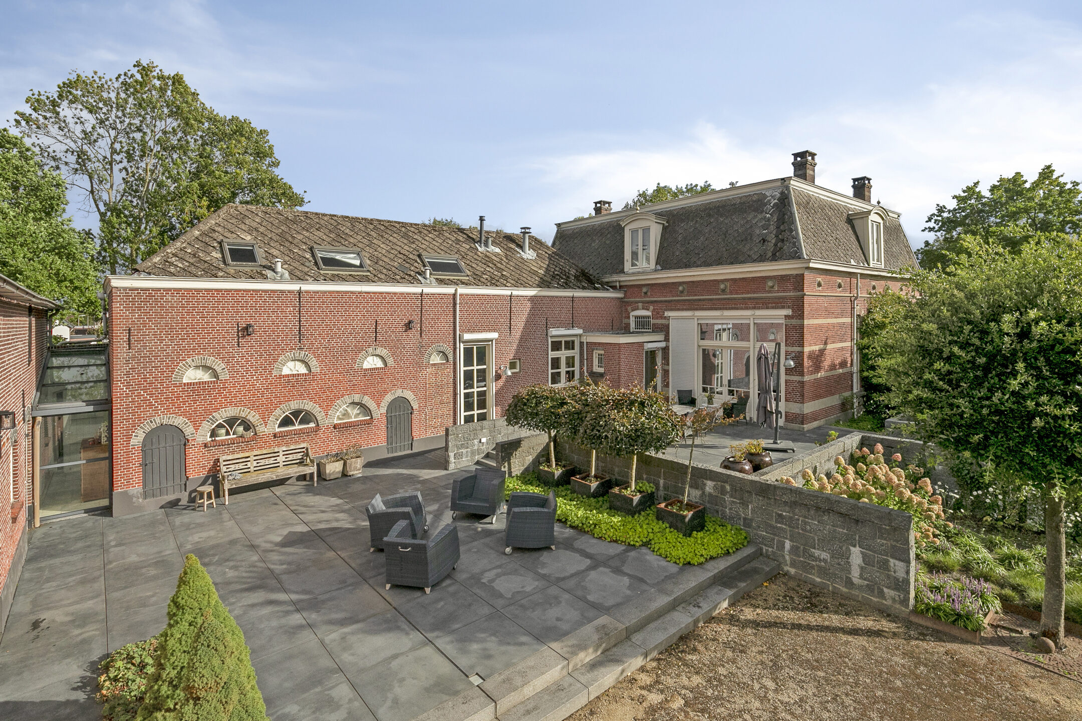 Uniek aan de rand van Wouw en het buitengebied gelegen monumentale, geheel gerenoveerde, herenboerderij met een prachtig aangelegde landschapstuin, diverse garages en stallingsruimten en een prachtig overdekt zwembad met een ontspanningsruimte.