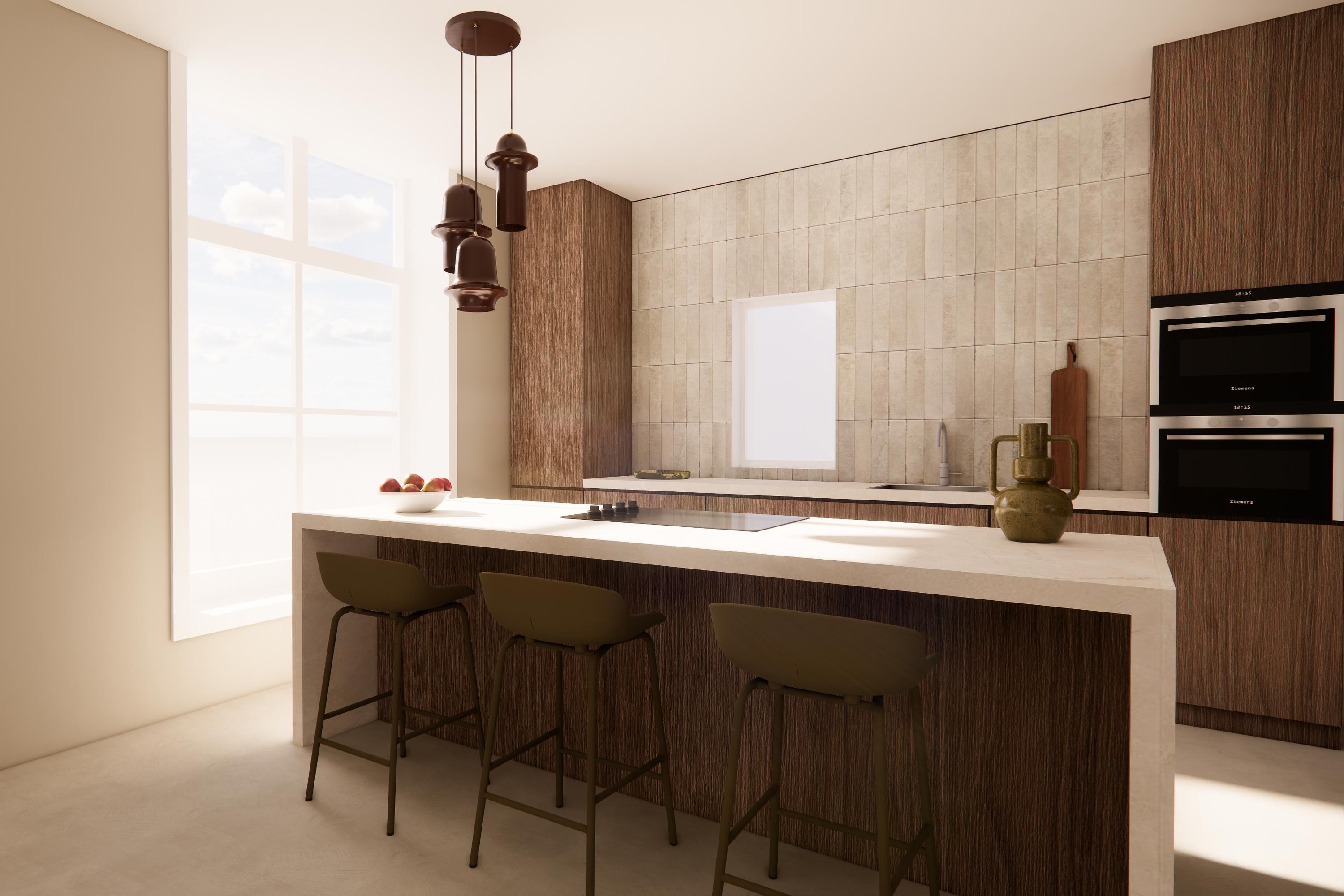 A spacious entrance leads into the kitchen and dining room. The impressive 17th-century beamed ceiling immediately sets the tone, while a high south-facing window floods the space with natural light. The kitchen (2020) features a large island and various built-in appliances and serves as the heart of this true live–work property. Adjoining the kitchen is a multifunctional studio of approx. 65 m², currently used as a photography and music studio.