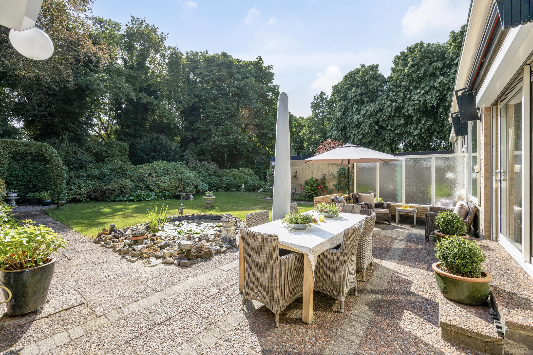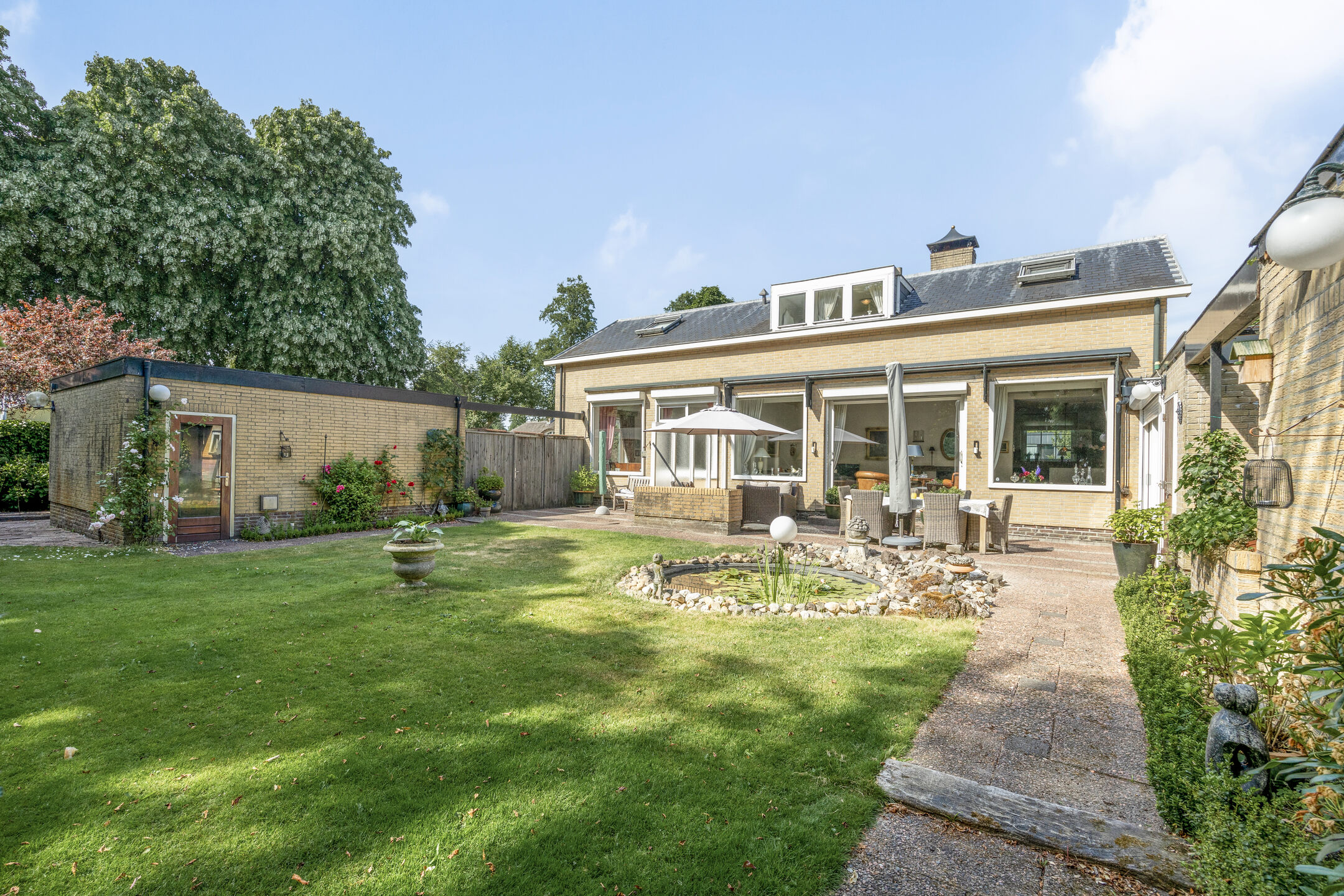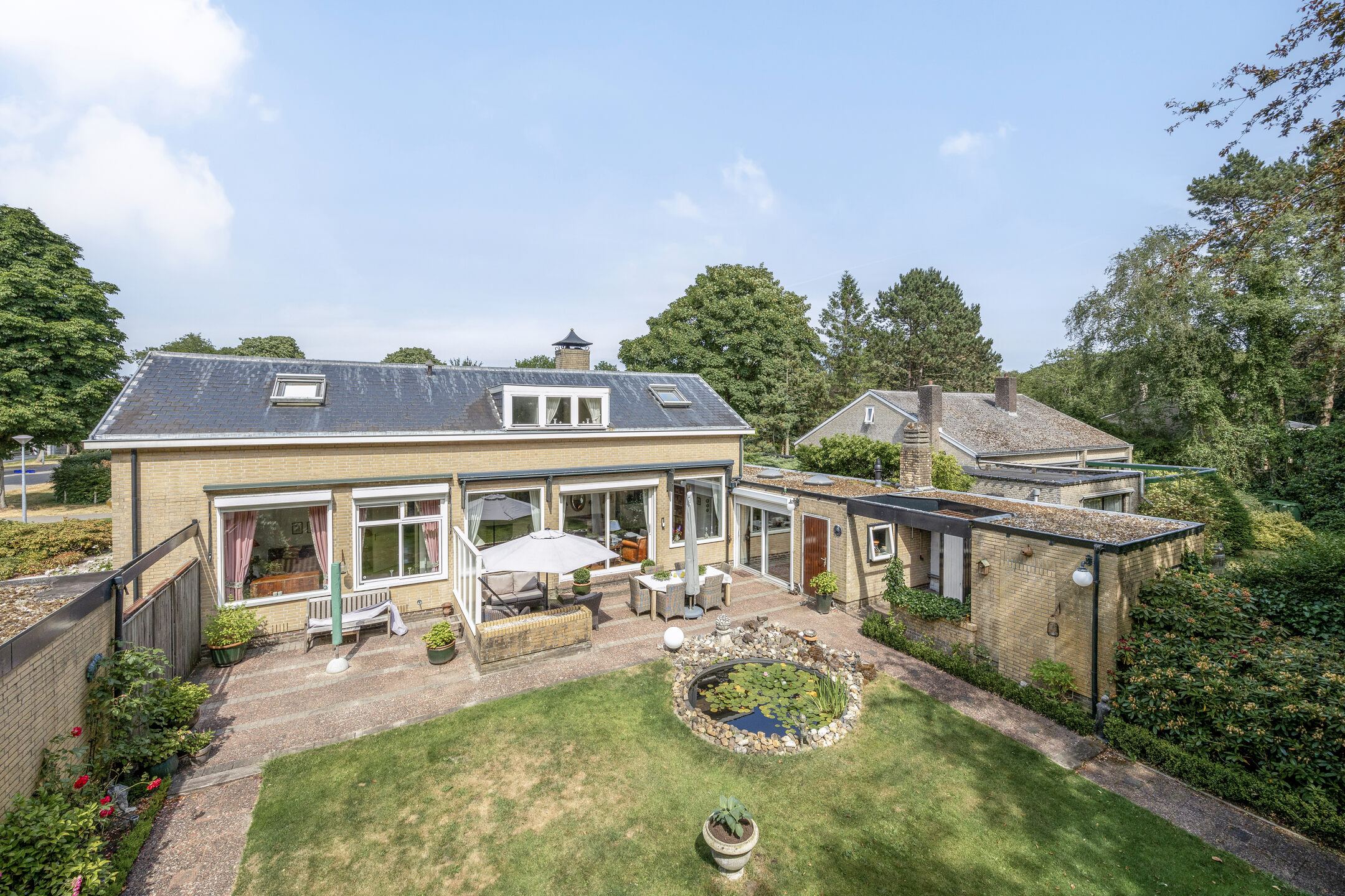 La Villa Alkmaar se sitúa de manera discreta en el elegante Oranjepark, sobre una parcela de 1.001 m² rodeada de vegetación y tranquilidad. Esta villa combina una elegancia discreta con comodidad, ofreciendo 190 m² de espacio habitable y un garaje doble independiente de 36 m², además de amplio aparcamiento en la entrada. La luz natural y las vistas al jardín impregnan todas las estancias gracias a los generosos ventanales y puertas correderas que dan acceso a un jardín trasero meticulosamente diseñado. La terraza, orientada al suroeste, invita a disfrutar de tardes relajadas junto a un estanque tranquilo, todo ello envuelto en la privacidad que ofrecen las plantas maduras.